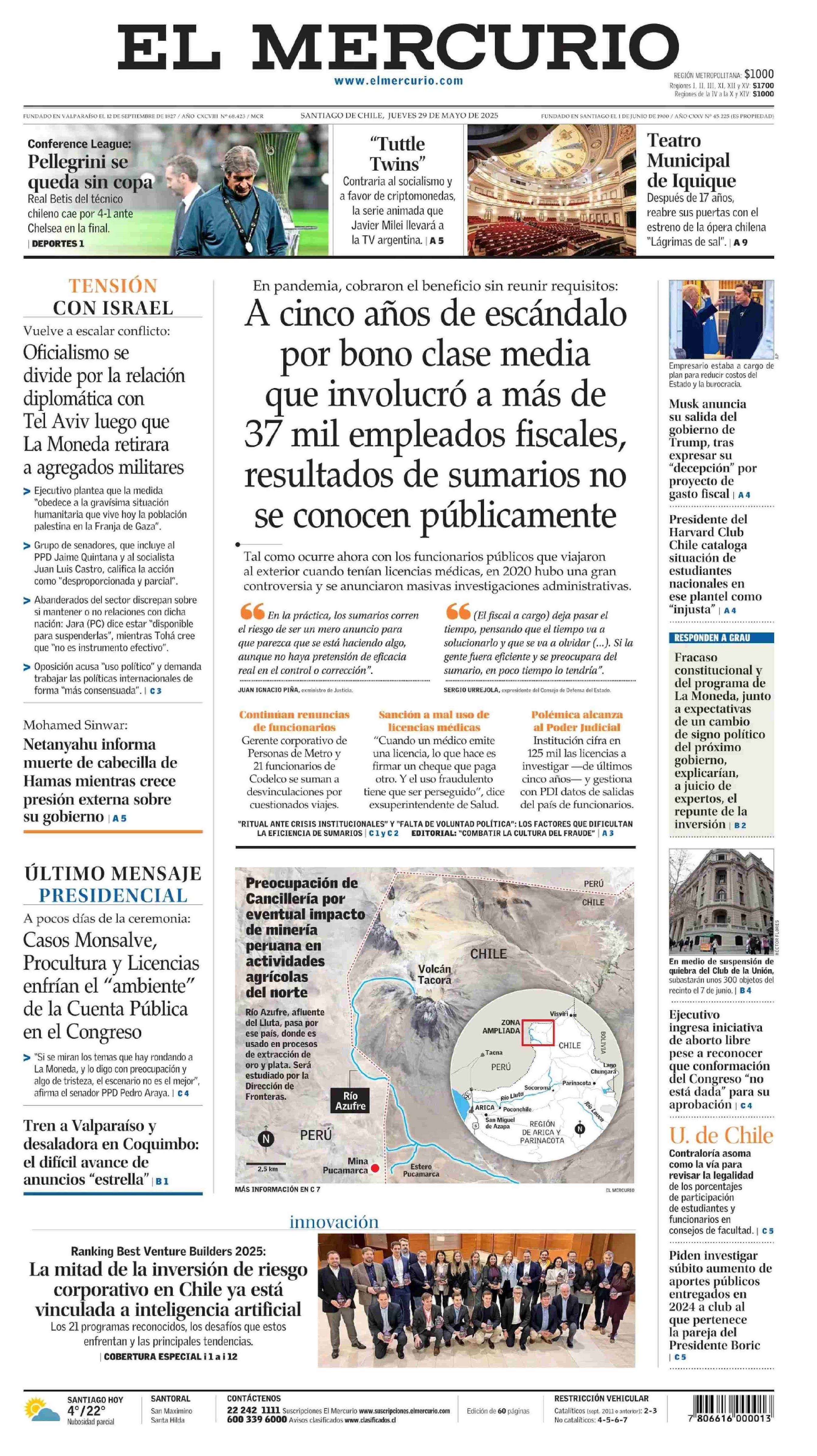PORTADA EL MERCURIO (A) - CHILE 29-05-2025 El Mercurio |