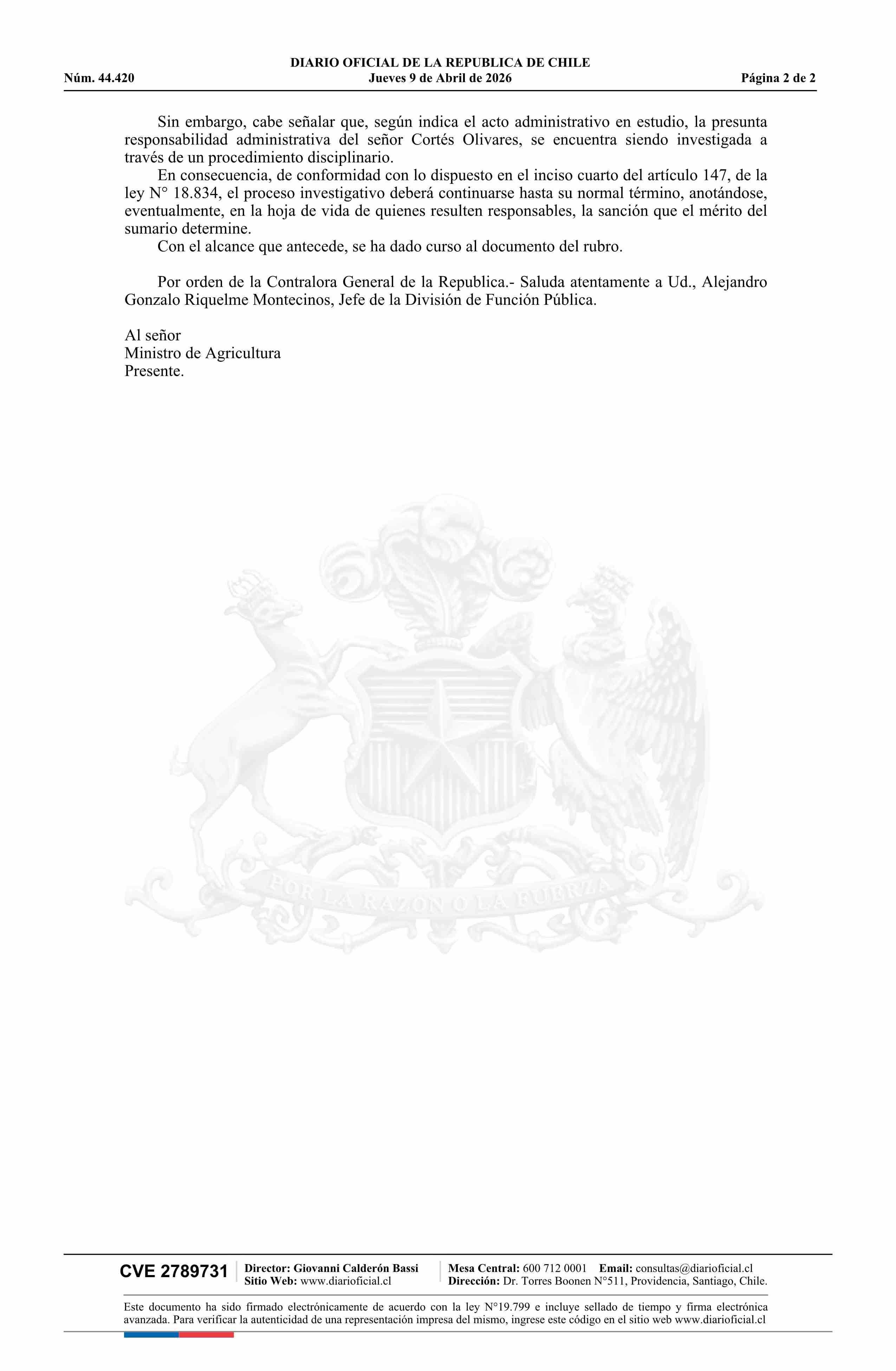 Título: Decreto número 3, de 2026.- Acepta renuncia voluntaria de don Cristián Cortés Olivares al cargo de Secretario Regional Ministerial de Agricultura de la Región de Atacama