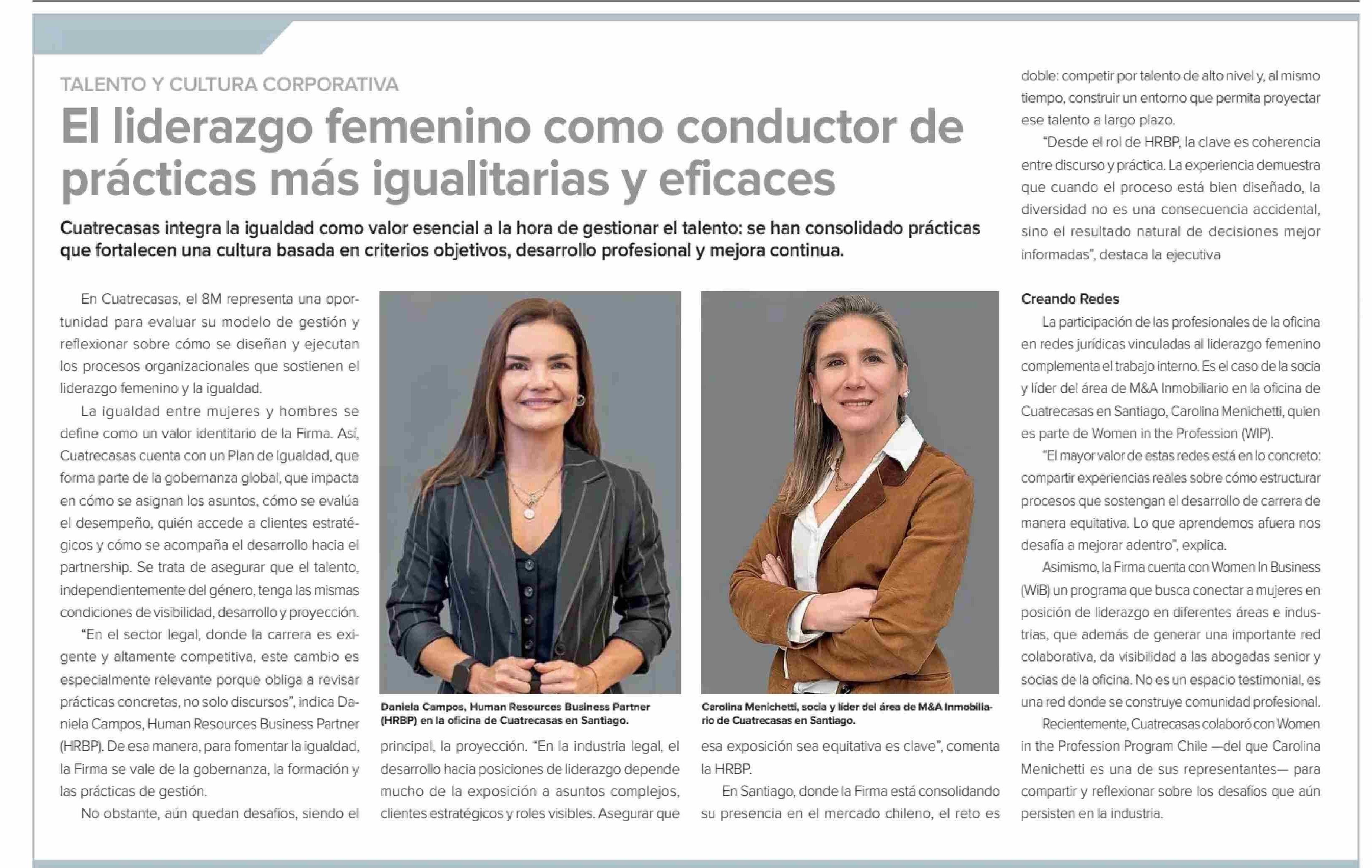 El liderazgo femenino como conductor de prácticas más igualitarias y eficaces 08-03-2026 Diario Financiero |