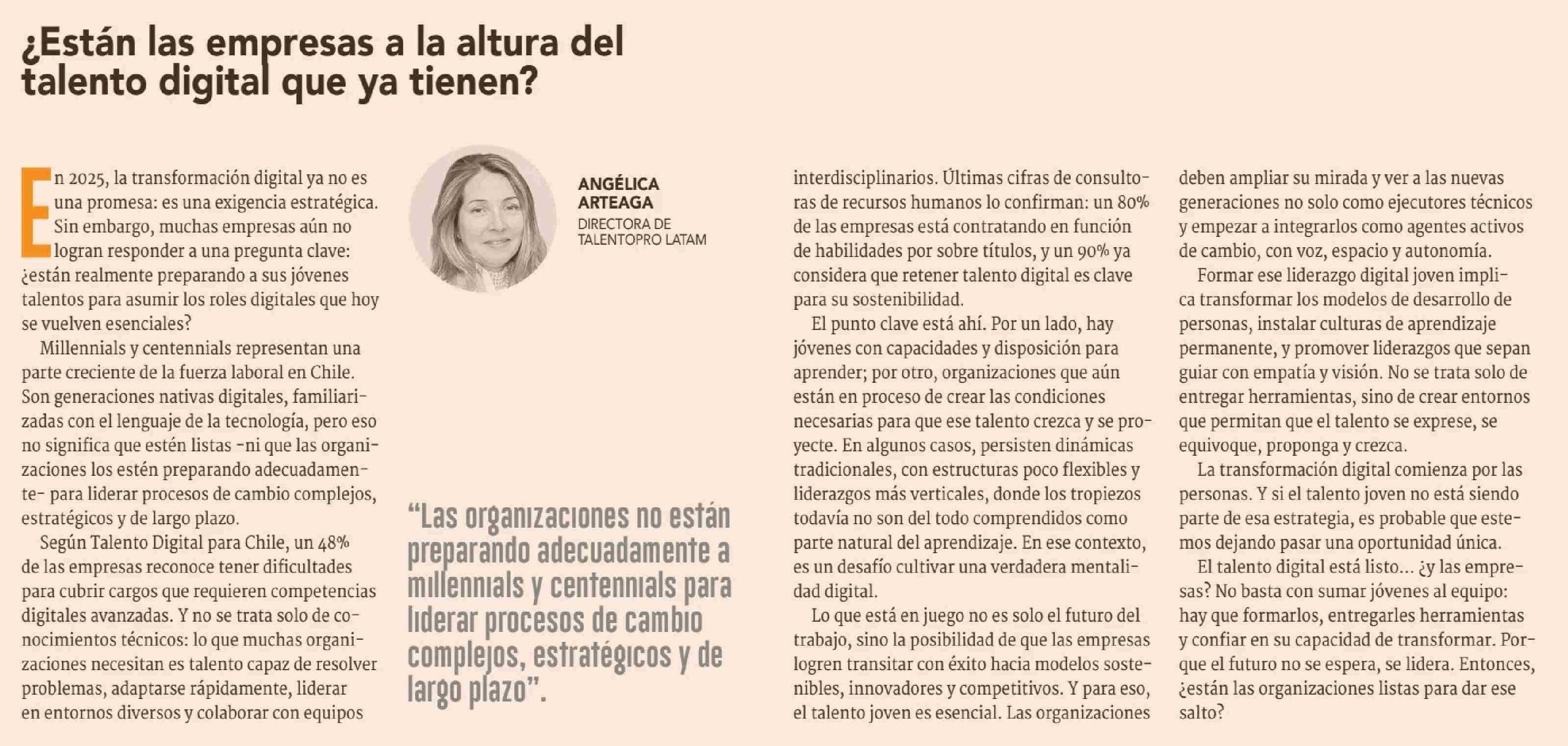 Columnas de Opinión: ¿Están las empresas a la altura del talento digital que ya tienen? 17-06-2025 Diario Financiero |