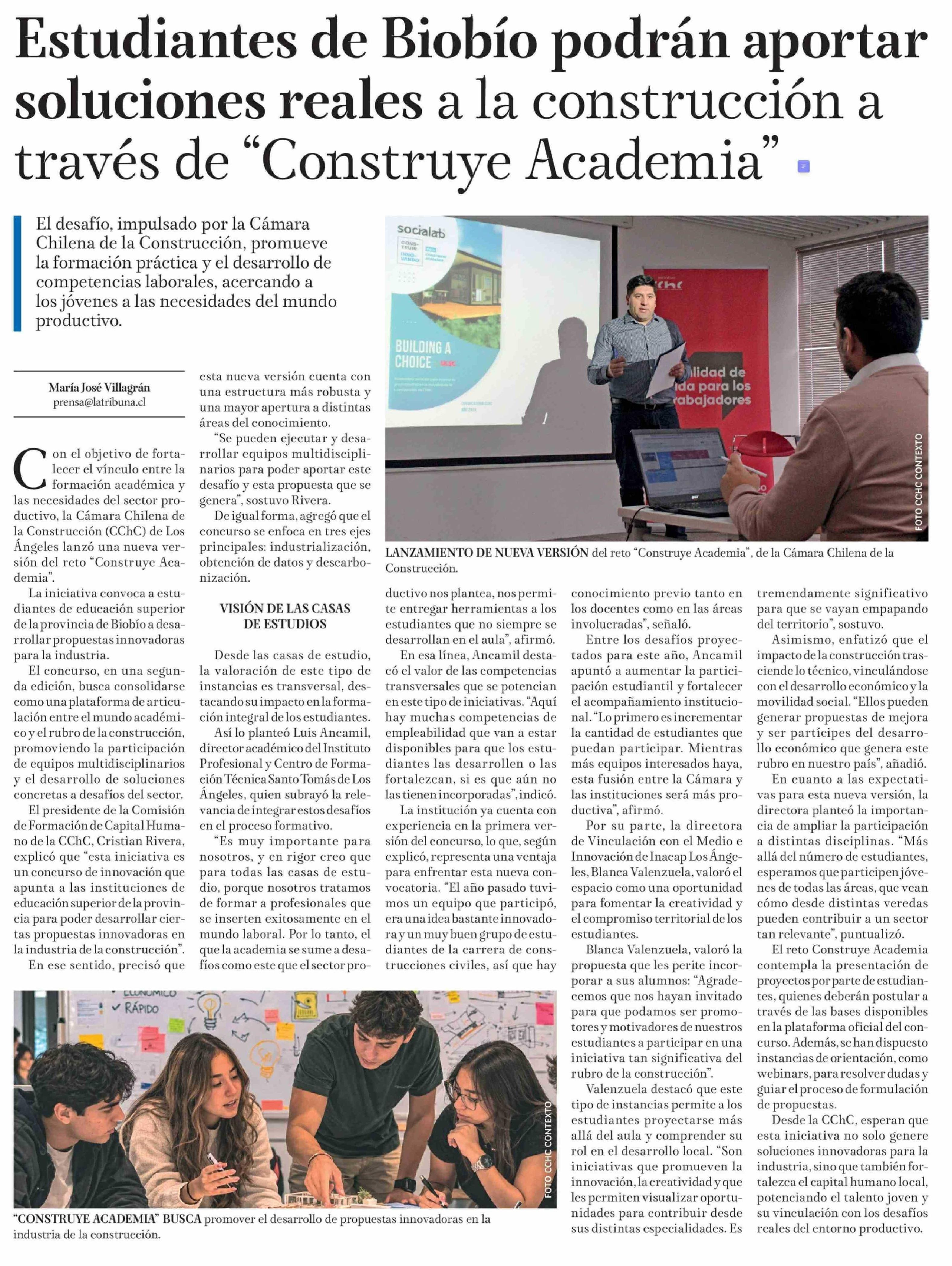 Título: Estudiantes de Biobío podrán aportar soluciones reales a la construcción a través de "Construye Academia"