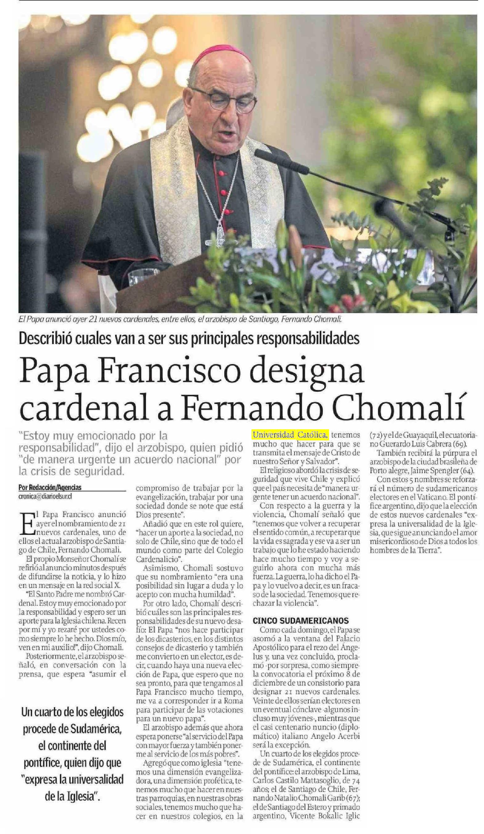 Papa Francisco designa cardenal a Fernando Chomalí 07-10-2024 El Sur |