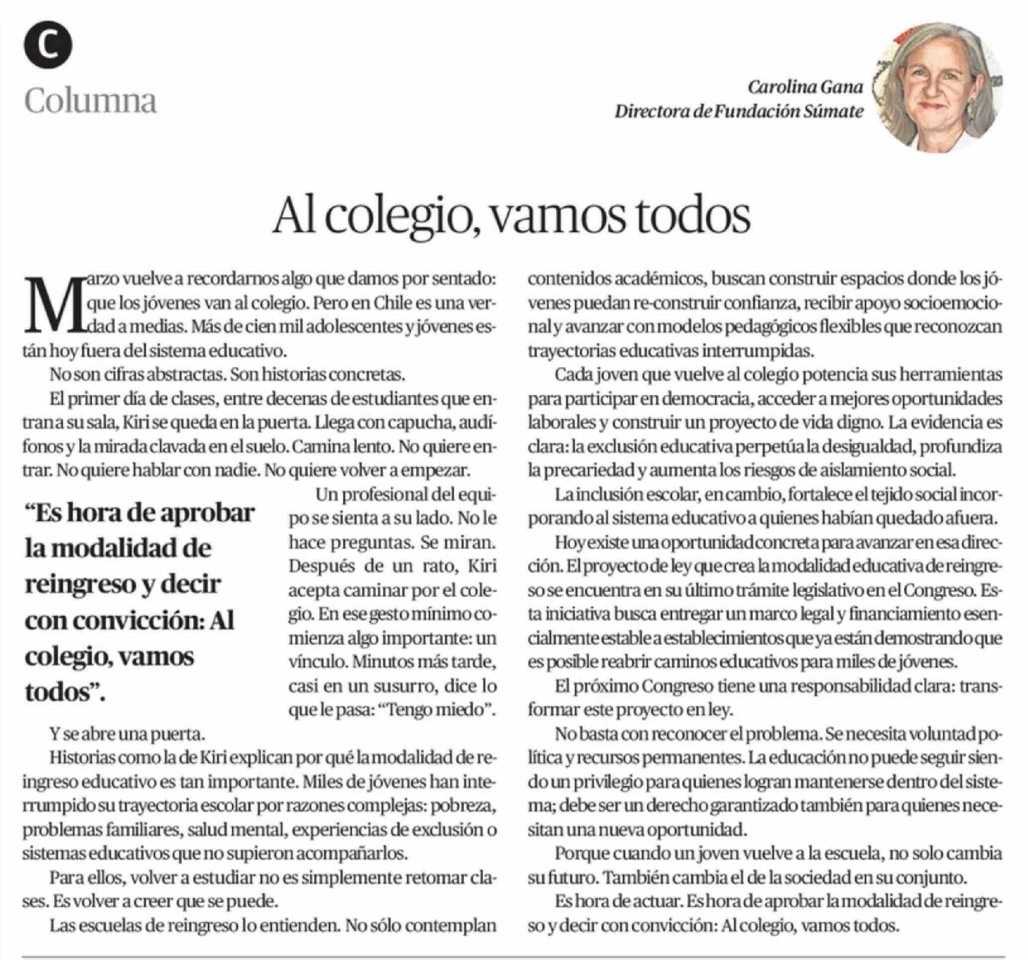 Columnas de Opinión: Al colegio, vamos todos 24-03-2026 El Mercurio de Antofagasta |