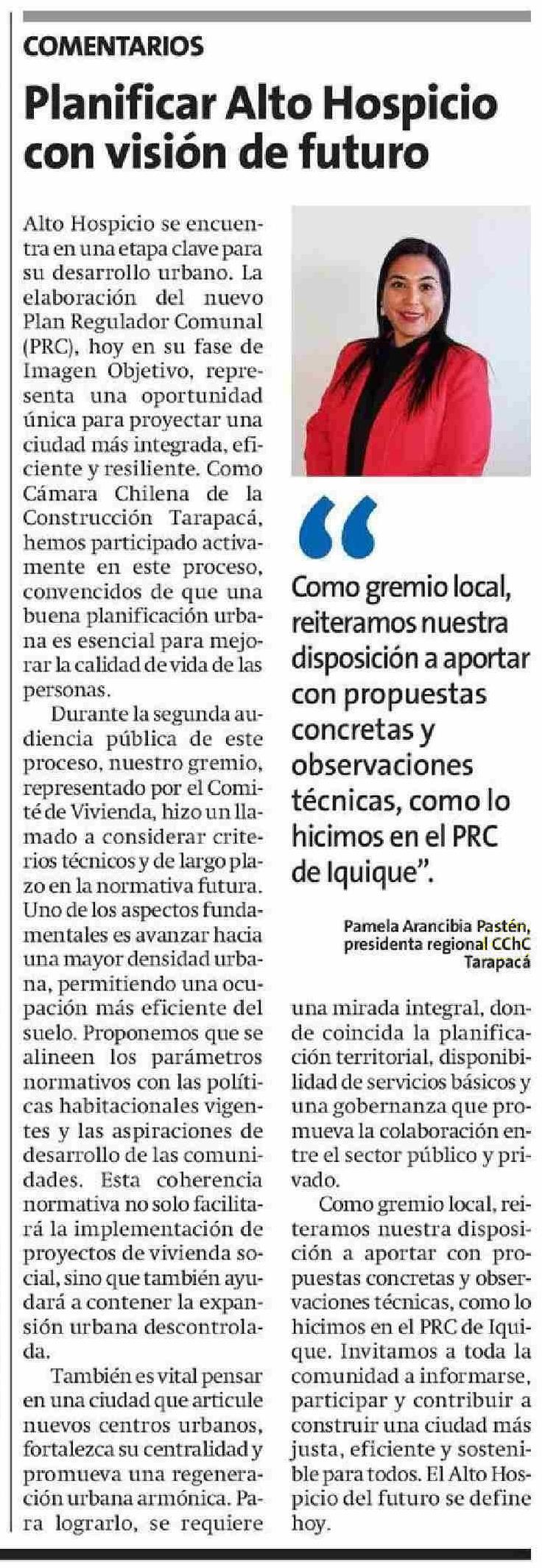 Columnas de Opinión: Planificar Alto Hospicio con visión de futuro 14-05-2025 La Estrella de Iquique |