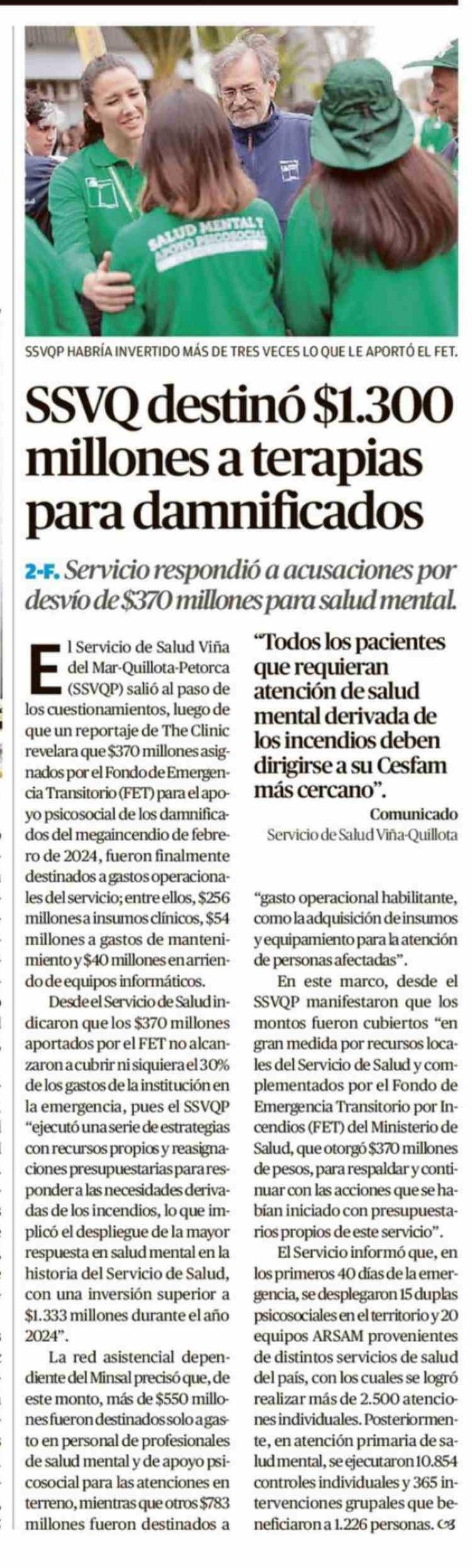 Título: SSVQ destinó $1.300 millones a terapias para damnificados