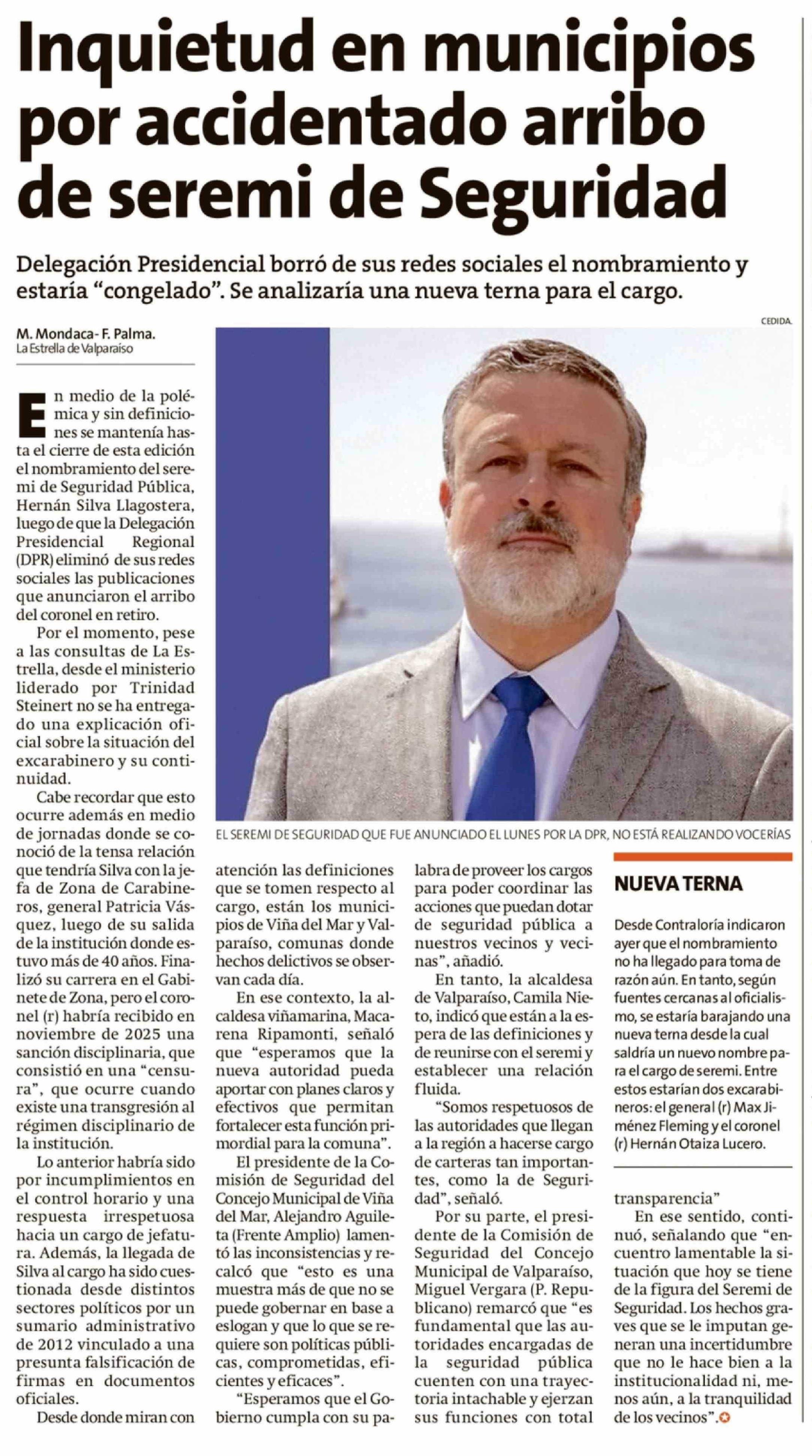 Título: Inquietud en municipios por accidentado arribo de seremi de Seguridad