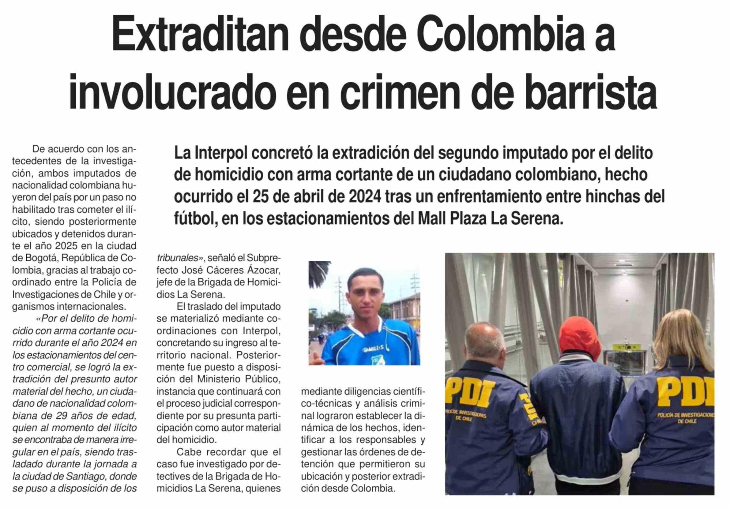 Extraditan desde Colombia a involucrado en crimen de barrista 17-03-2026 Diario la Región |
