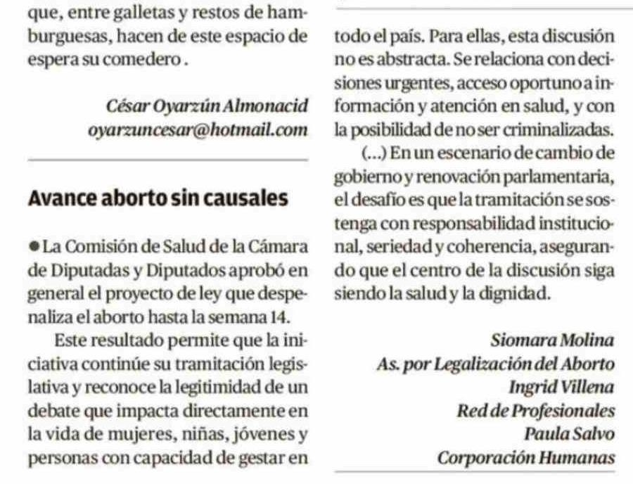 Cartas: Avance aborto sin causales 07-03-2026 Diario Austral Región de Los Ríos |