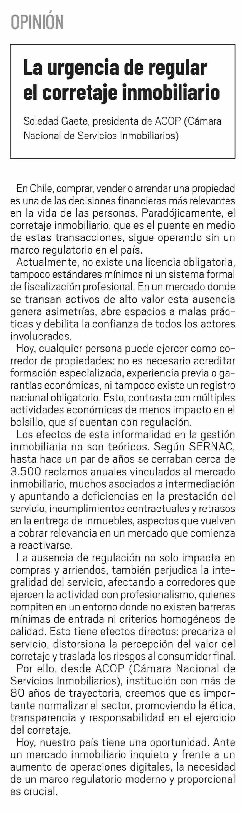 Título: Columnas de Opinión: La urgencia de regular el corretaje inmobiliario