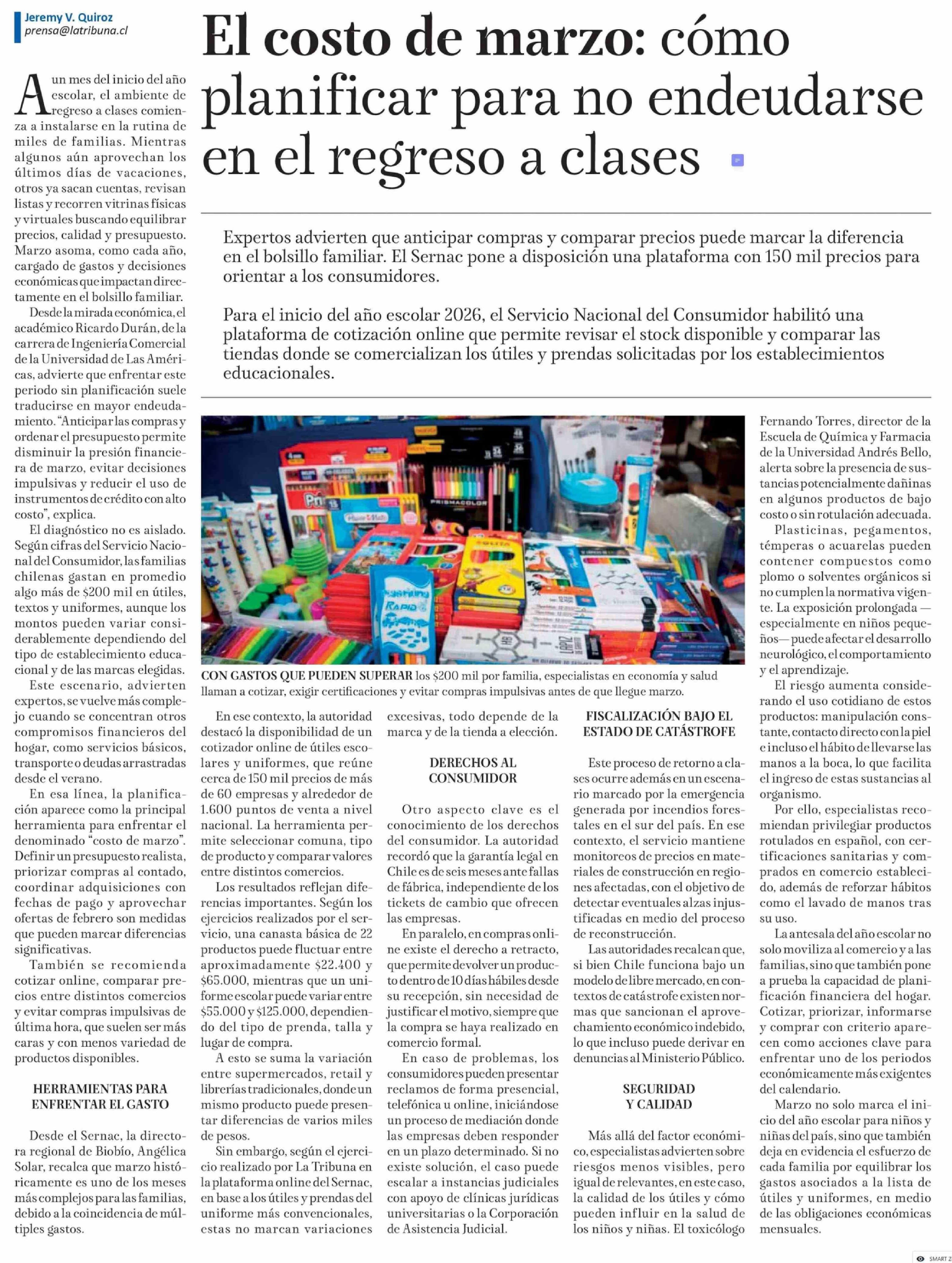 El costo de marzo: cómo planificar para no endeudarse en el regreso a clases 21-02-2026 La Tribuna |