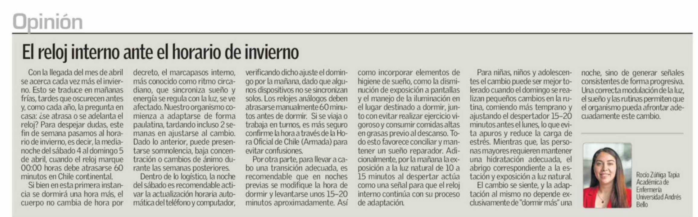 Columnas de Opinión: El reloj interno ante el horario de invierno 05-04-2026 El Sur |