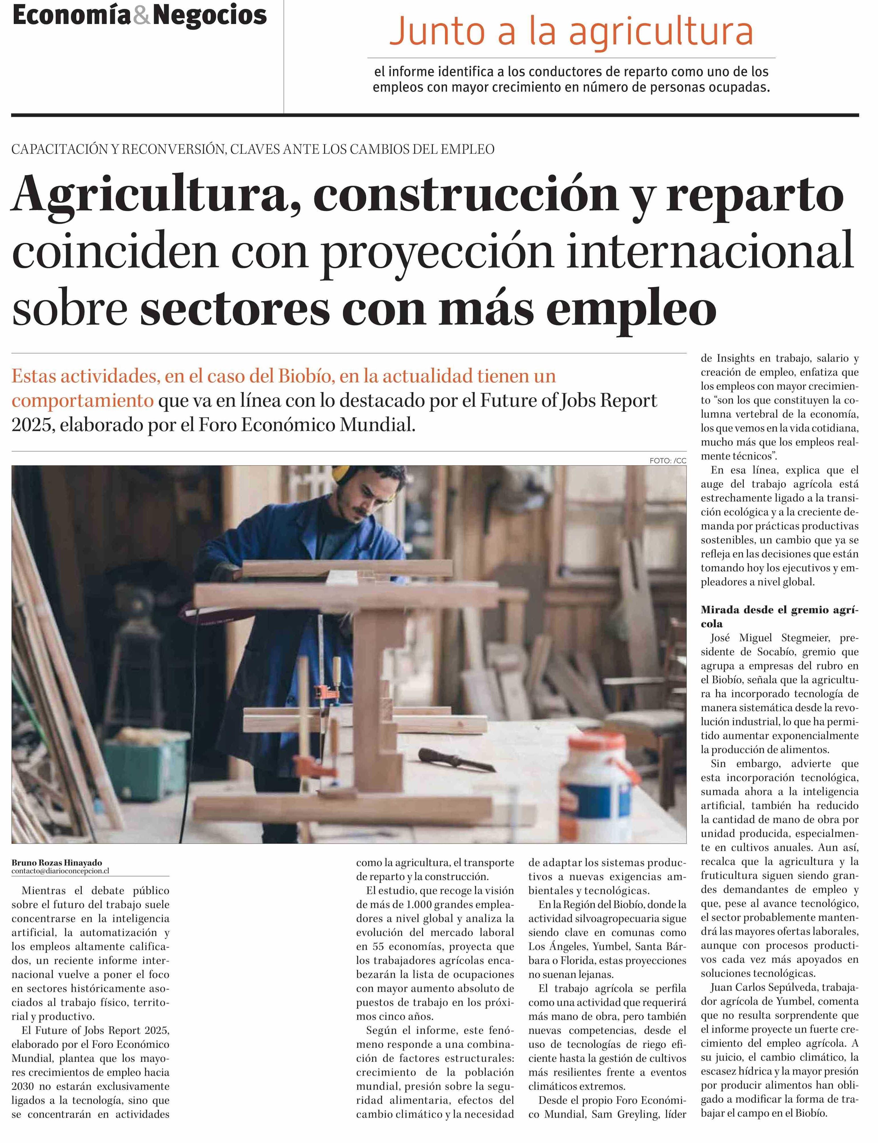 Agricultura, construcción y reparto coinciden con proyección internacional sobre sectores con más empleo 18-01-2026 Diario Concepción |