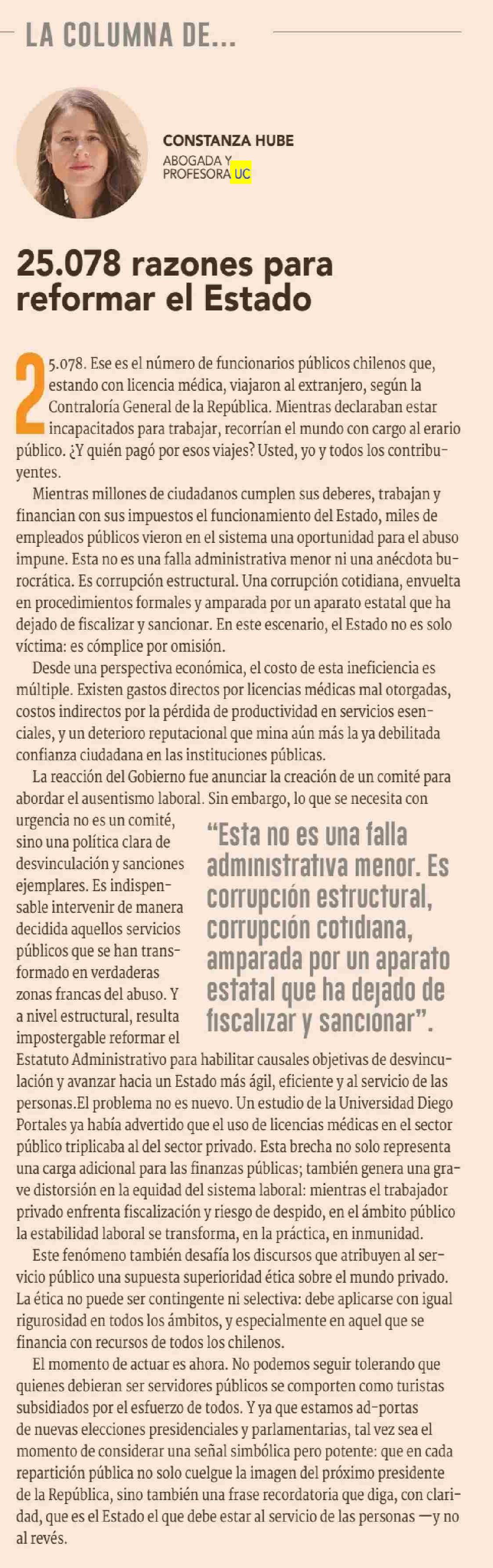 COLUMNAS DE OPINIÓN: 25.078 razones para reformar el Estado 23-05-2025 Diario Financiero |