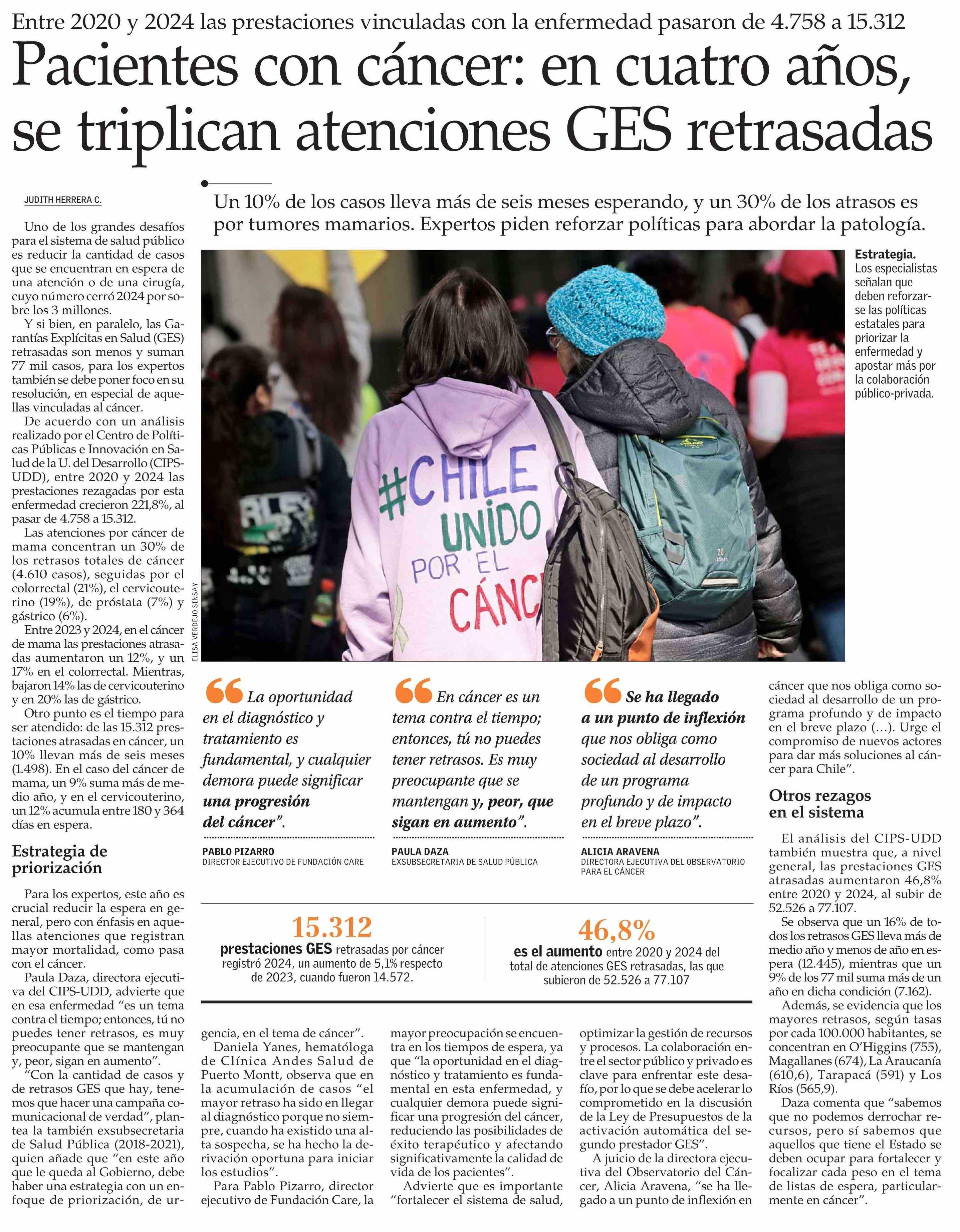Título: Pacientes con cáncer: en cuatro años, se triplican atenciones GES retrasadas