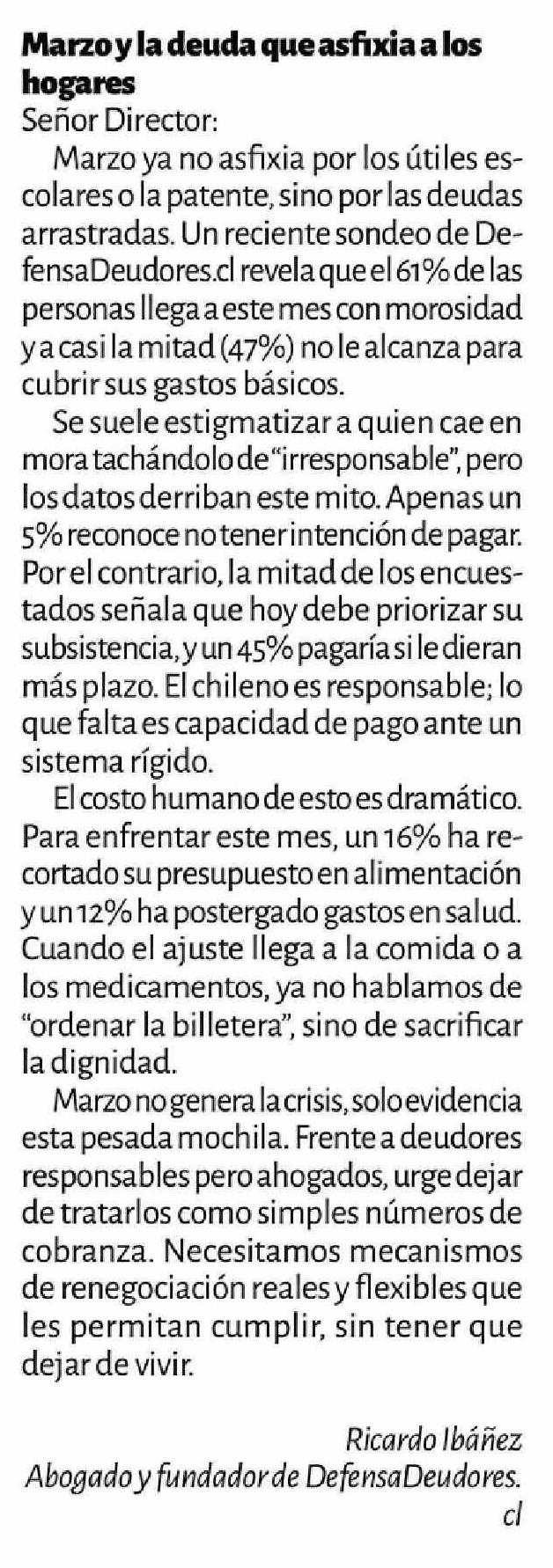 | Título: | CARTAS: Marzo y la deuda que asfixia a los hogares |