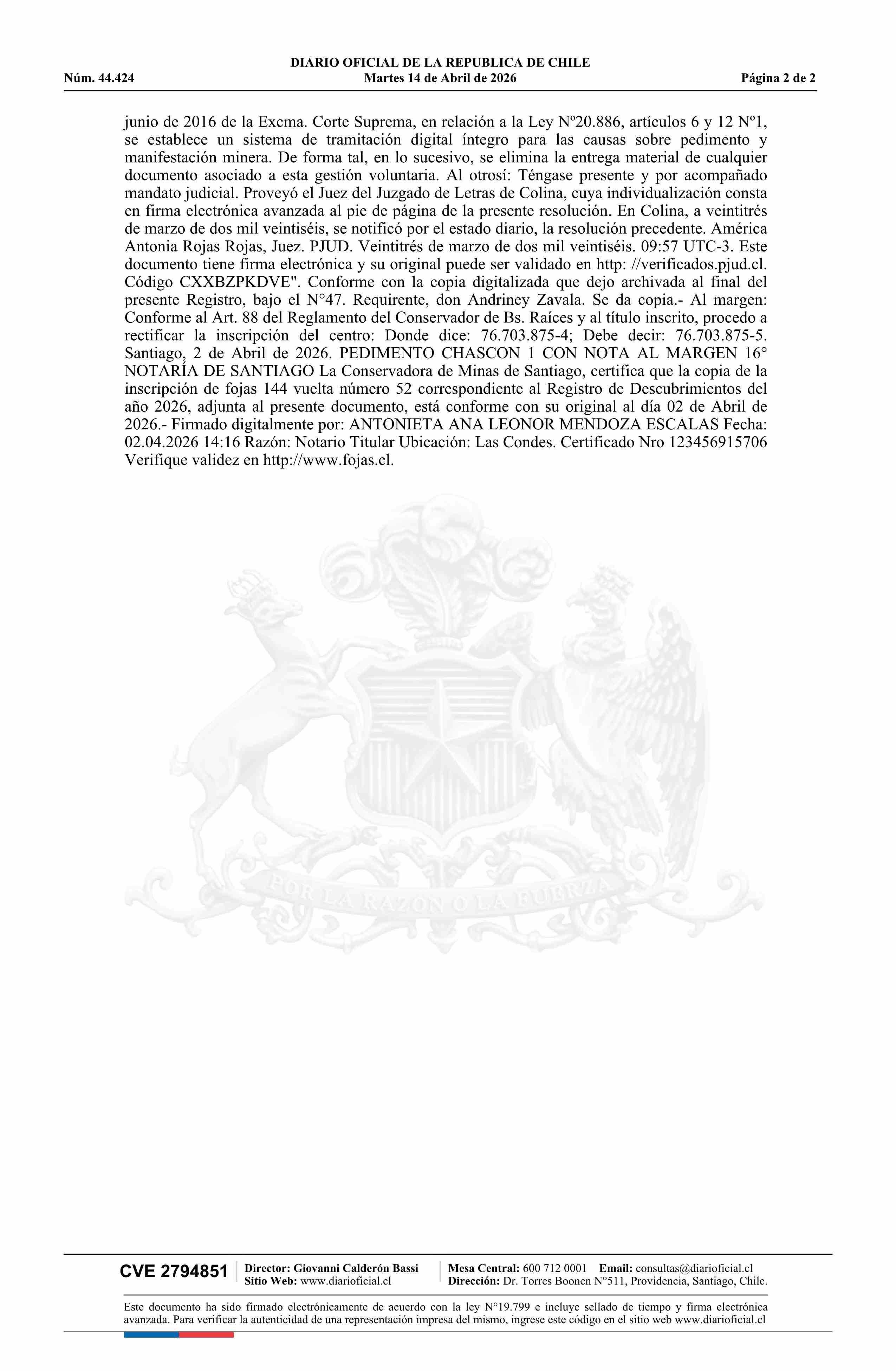 14-04-2026 DIARIO OFICIAL CHILE - BOLETÍN OFICIAL DE MINERÍA