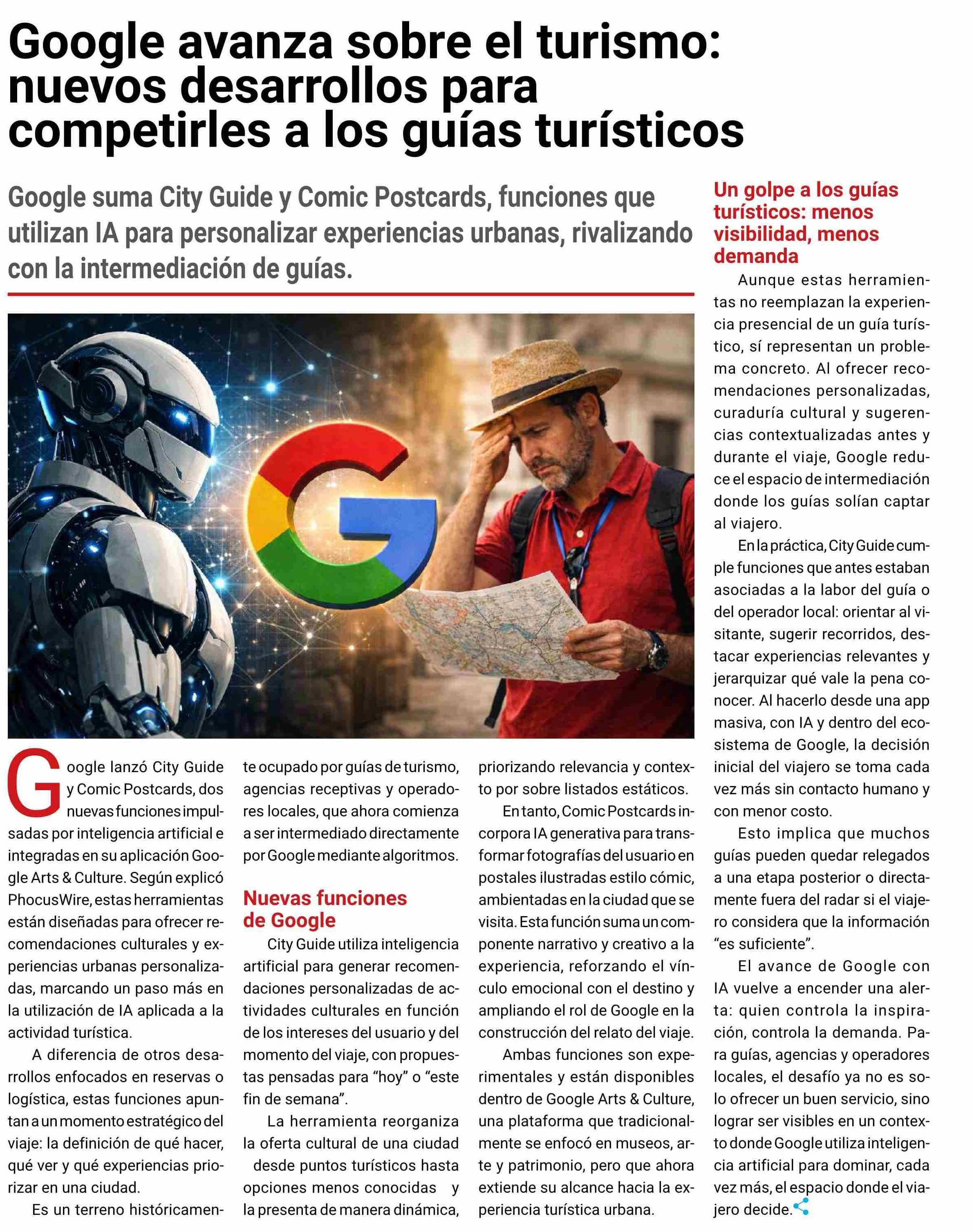 | Título: | Google avanza sobre el turismo: nuevos desarrollos para competirles a los guías turísticos |