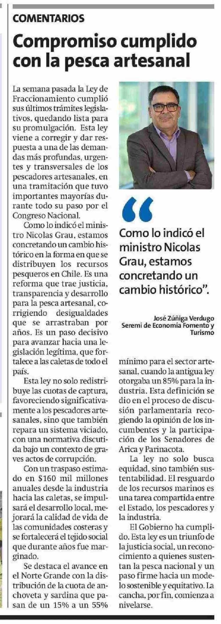 Columnas de Opinión: Compromiso cumplido con la pesca artesanal 25-06-2025 La Estrella de Arica |
