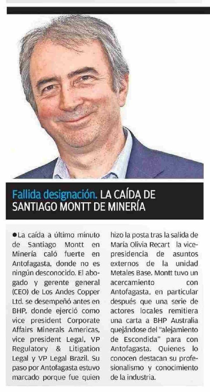 Título: Fallida designación. LA CAÍDA DE SANTIAGO MONTT DE MINERÍA