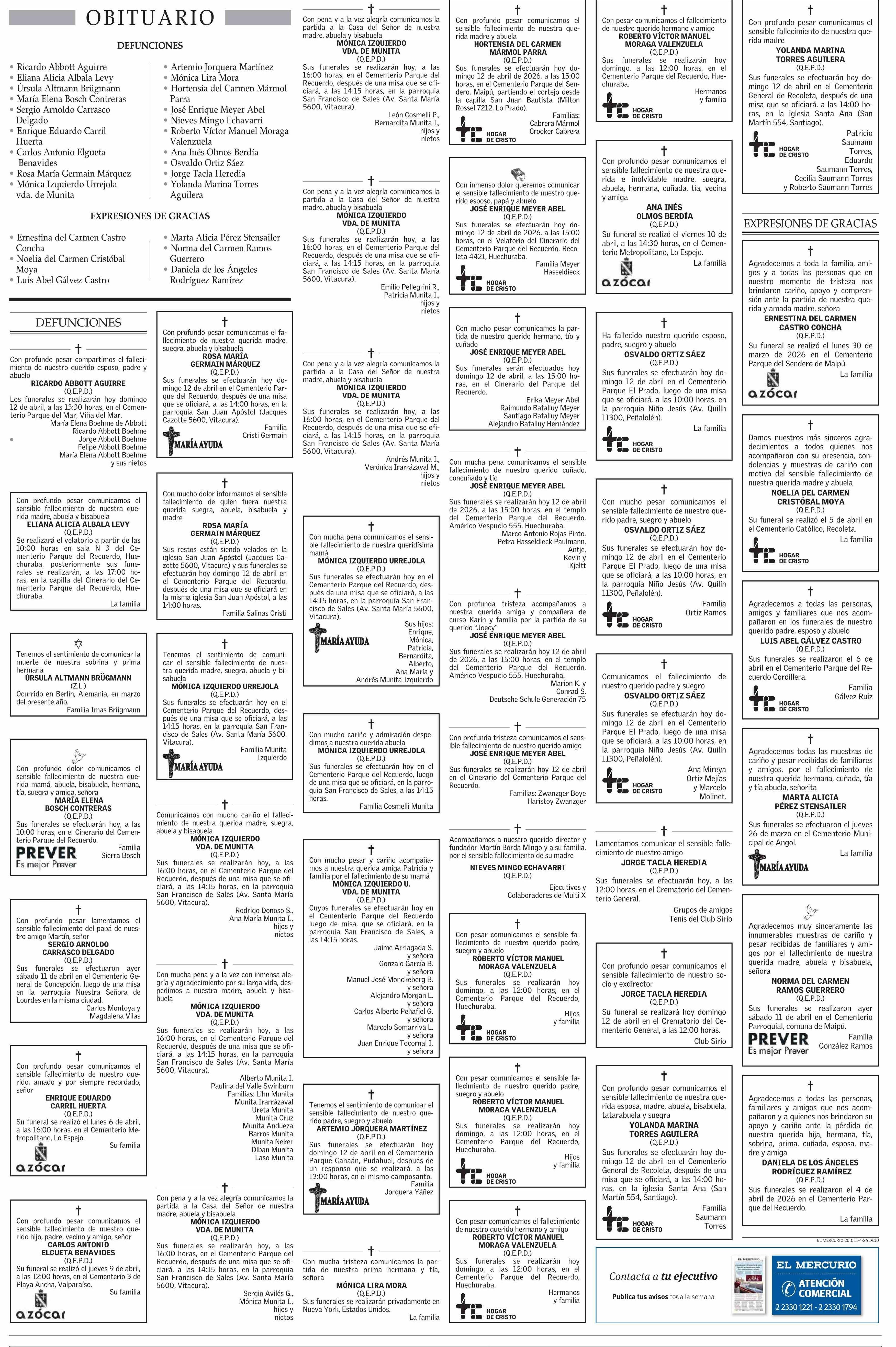 Obituario: O B I T U A R I O 12-04-2026 El Mercurio |
