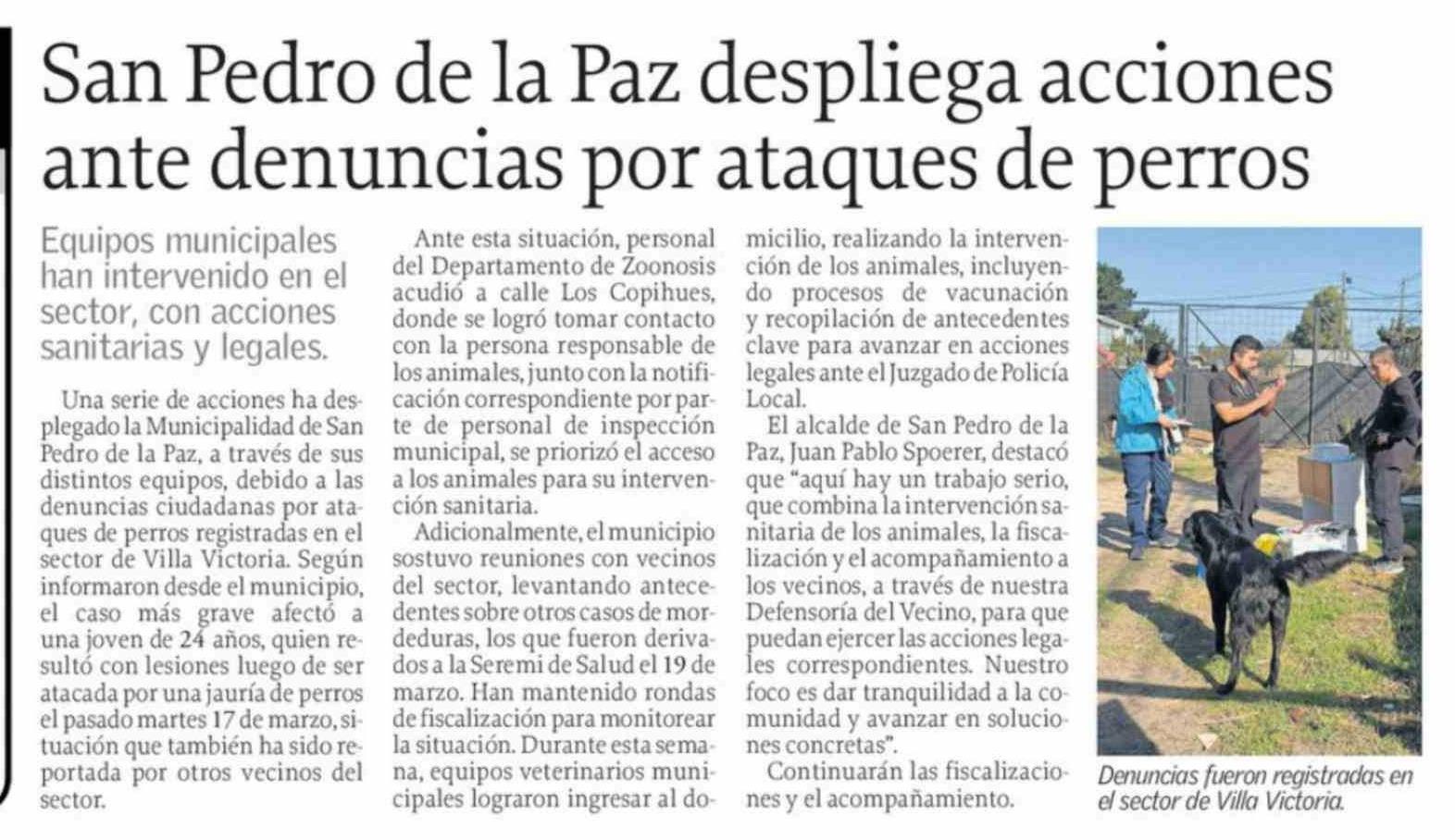 San Pedro de la Paz despliega acciones ante denuncias por ataques de perros 25-03-2026 El Sur |