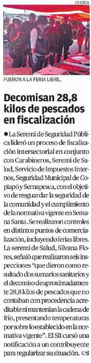 Decomisan 28,8 kilos de pescados en fiscalización 03-04-2026 El Diario de Atacama |