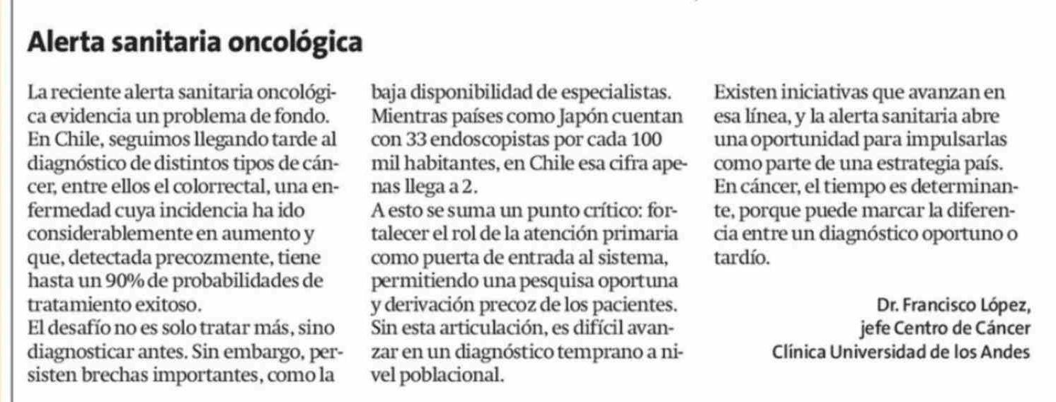 Cartas: Alerta sanitaria oncológica 15-04-2026 La Estrella de Iquique |