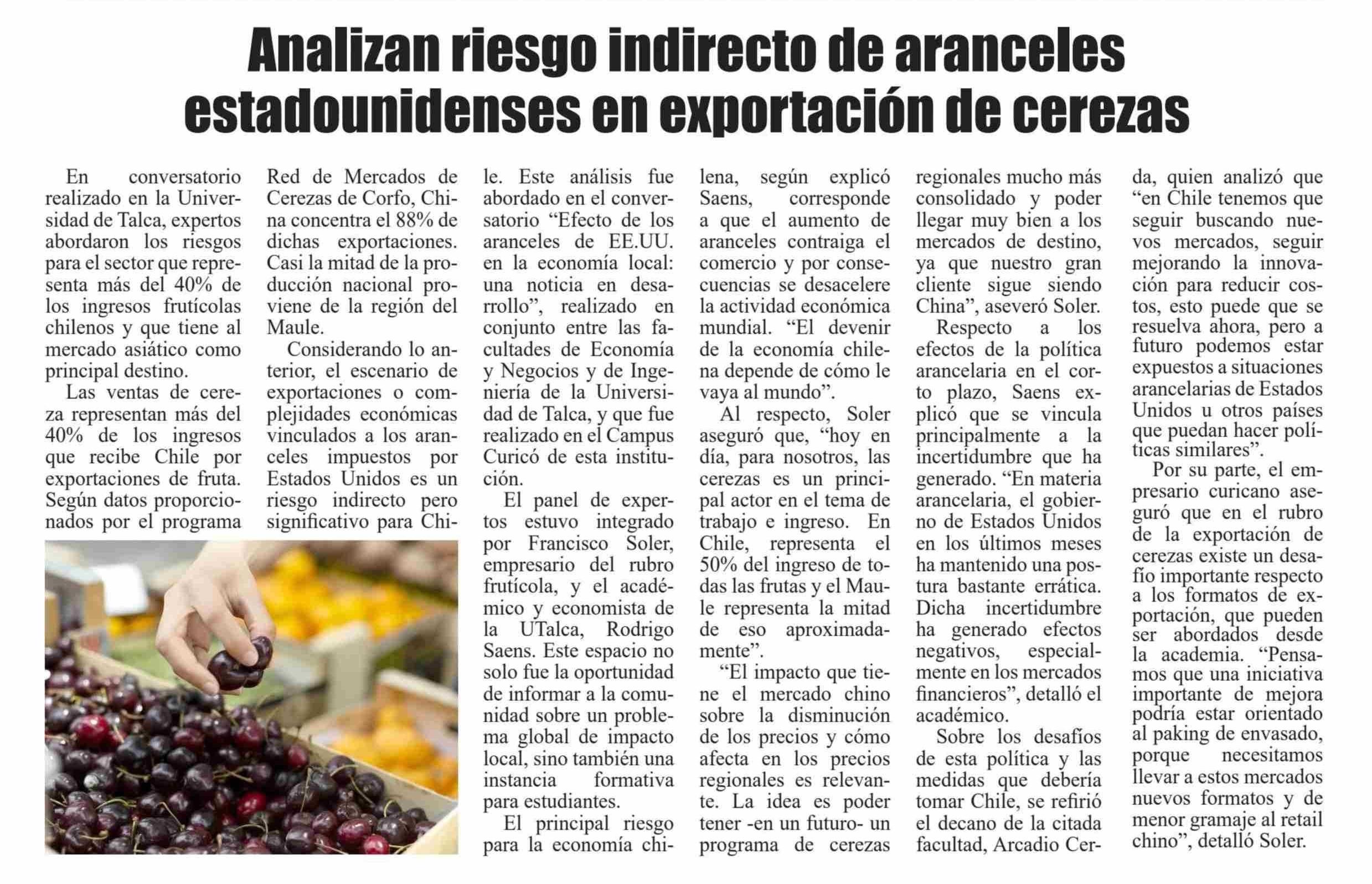 Analizan riesgo indirecto de aranceles estadounidenses en exportación de cerezas 22-06-2025 El Heraldo |