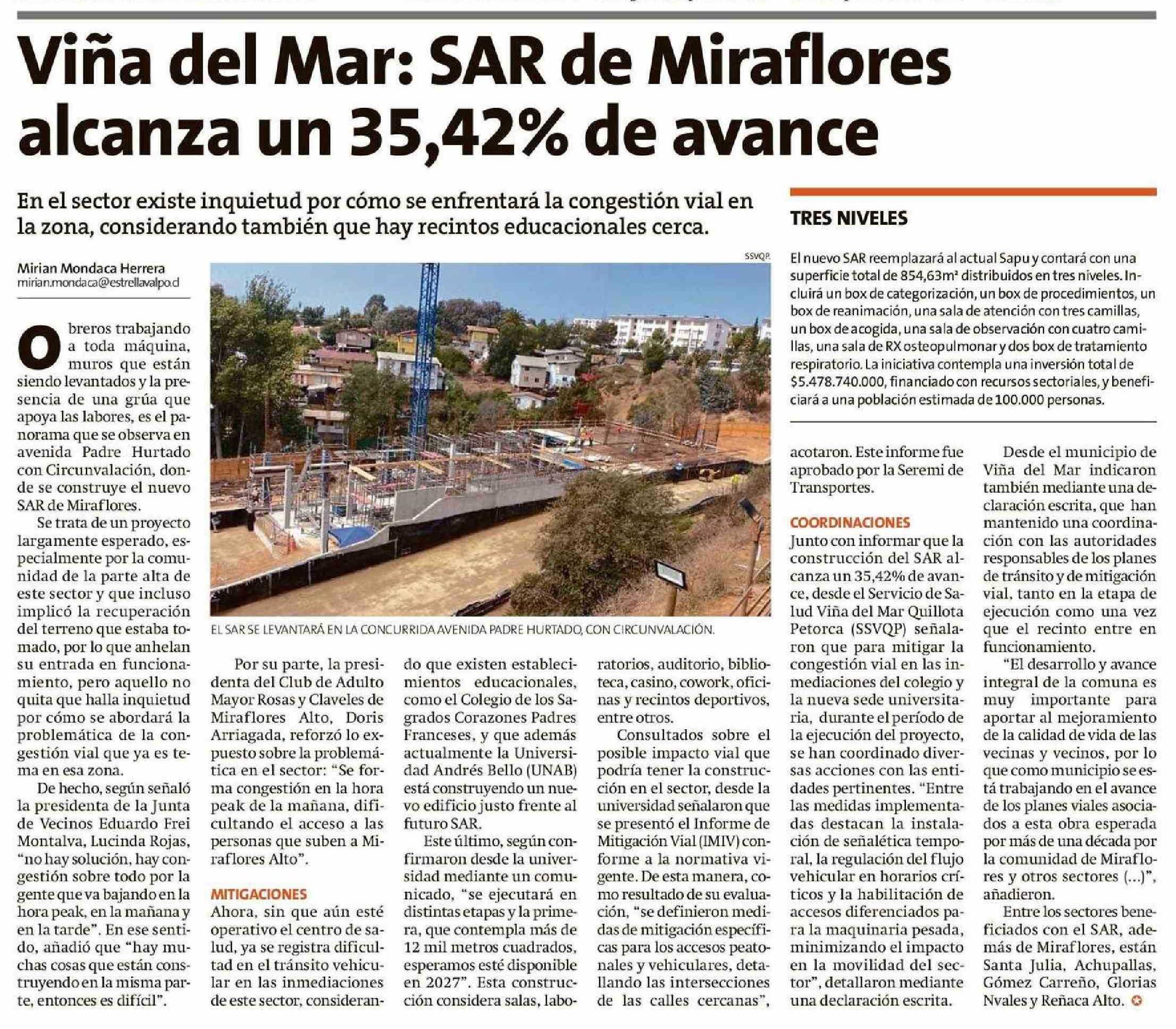 Viña del Mar: SAR de Miraflores alcanza un 35,42% de avance 13-03-2025 La Estrella de Valparaíso |