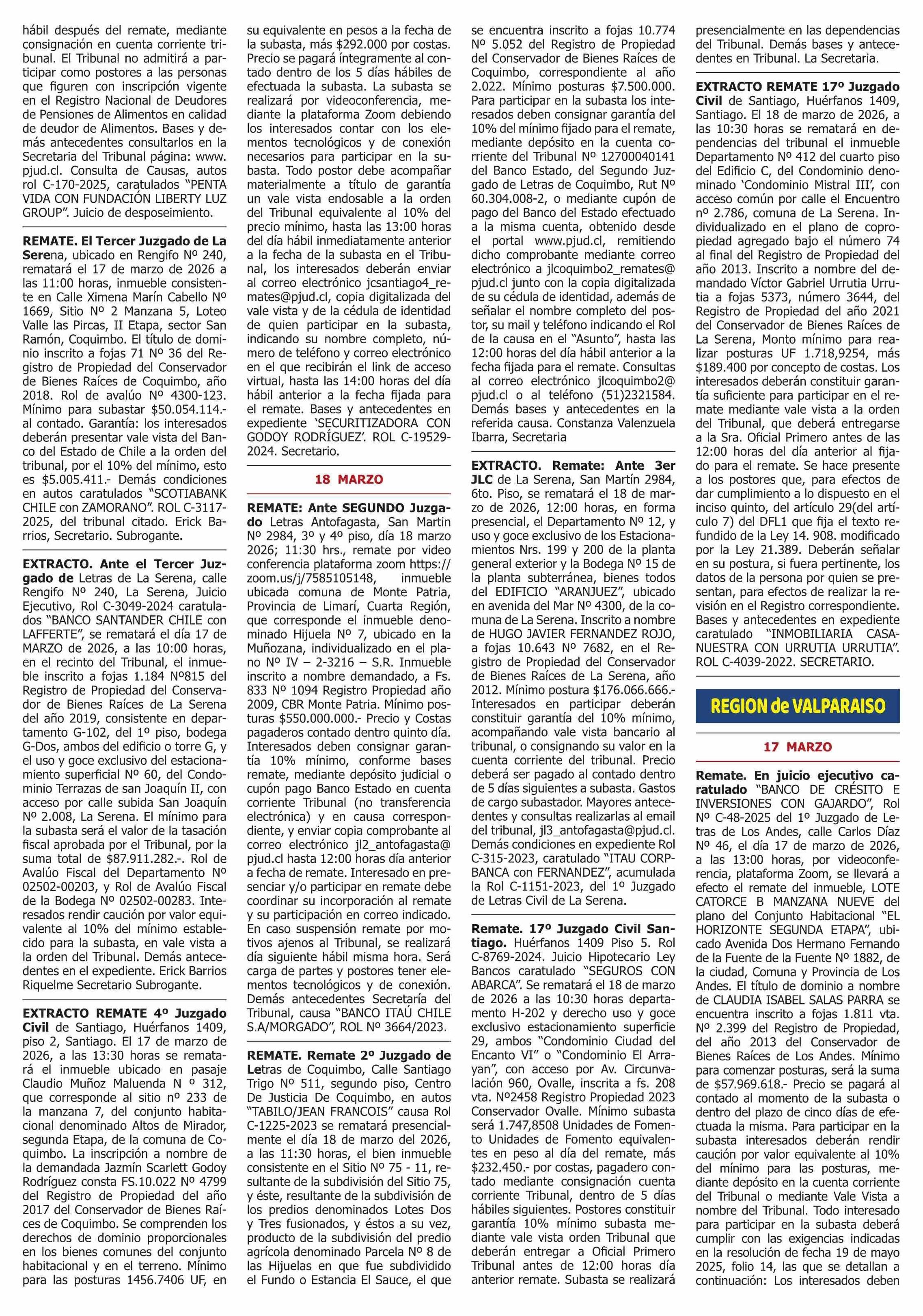 REMATES: REMATES de PROPIEDADES (ORDENADOS por REGIONES 11-03-2026 P&L Públicos y Legales |