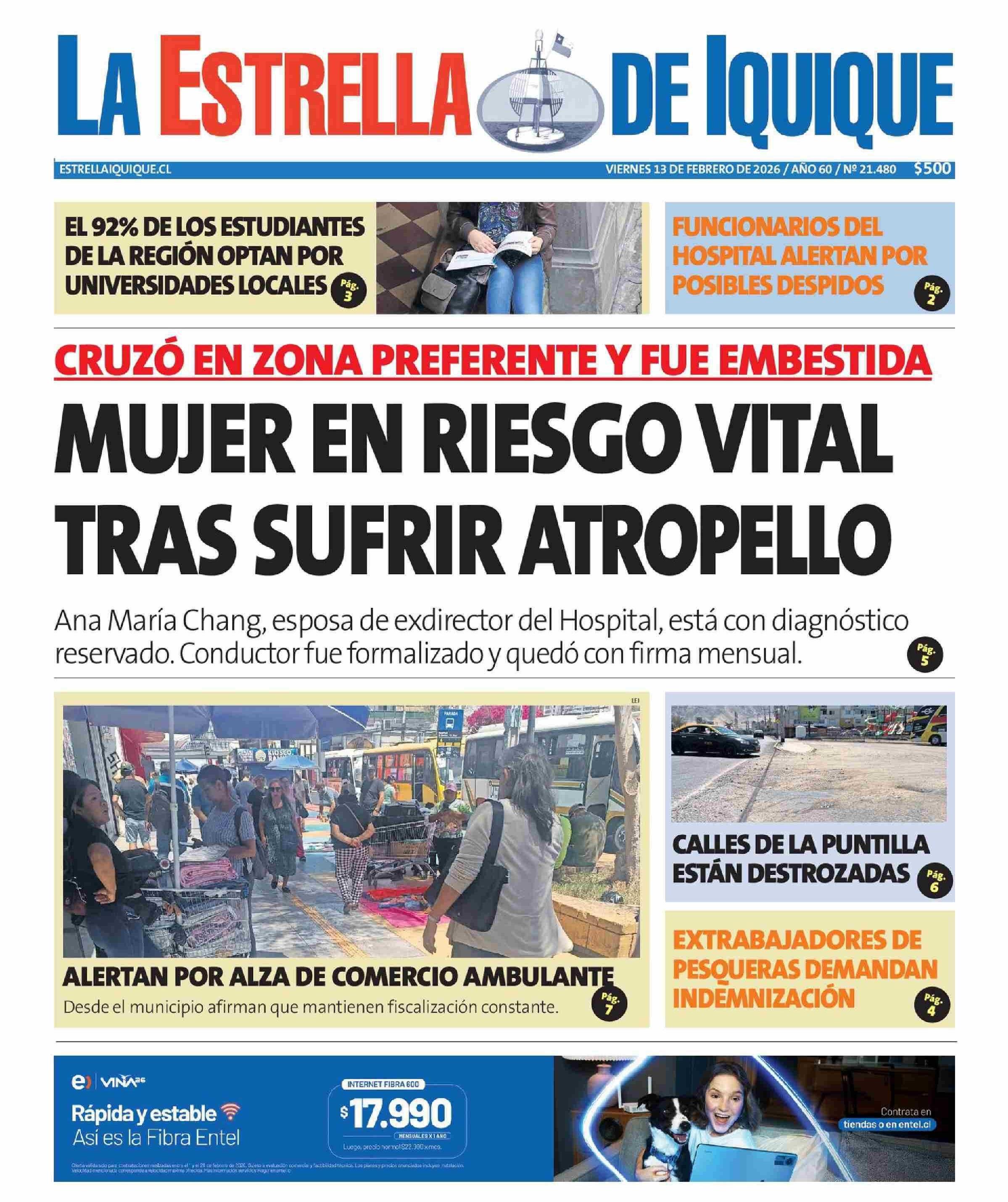 PORTADA LA ESTRELLA DE IQUIQUE - CHILE 13-02-2026 La Estrella de Iquique |