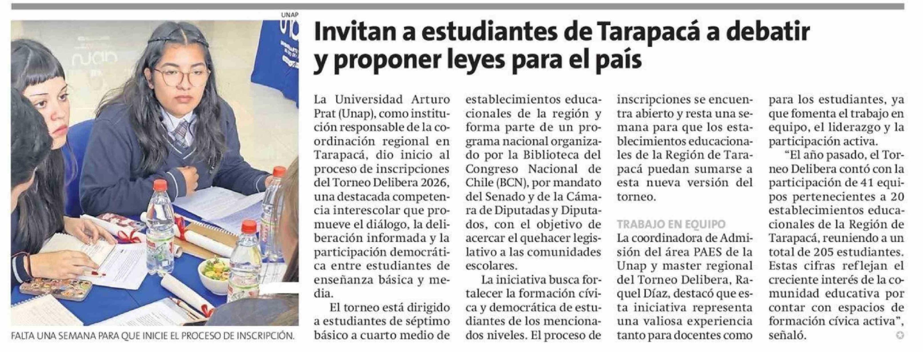 Título: Invitan a estudiantes de Tarapacá a debatir y proponer leyes para el país