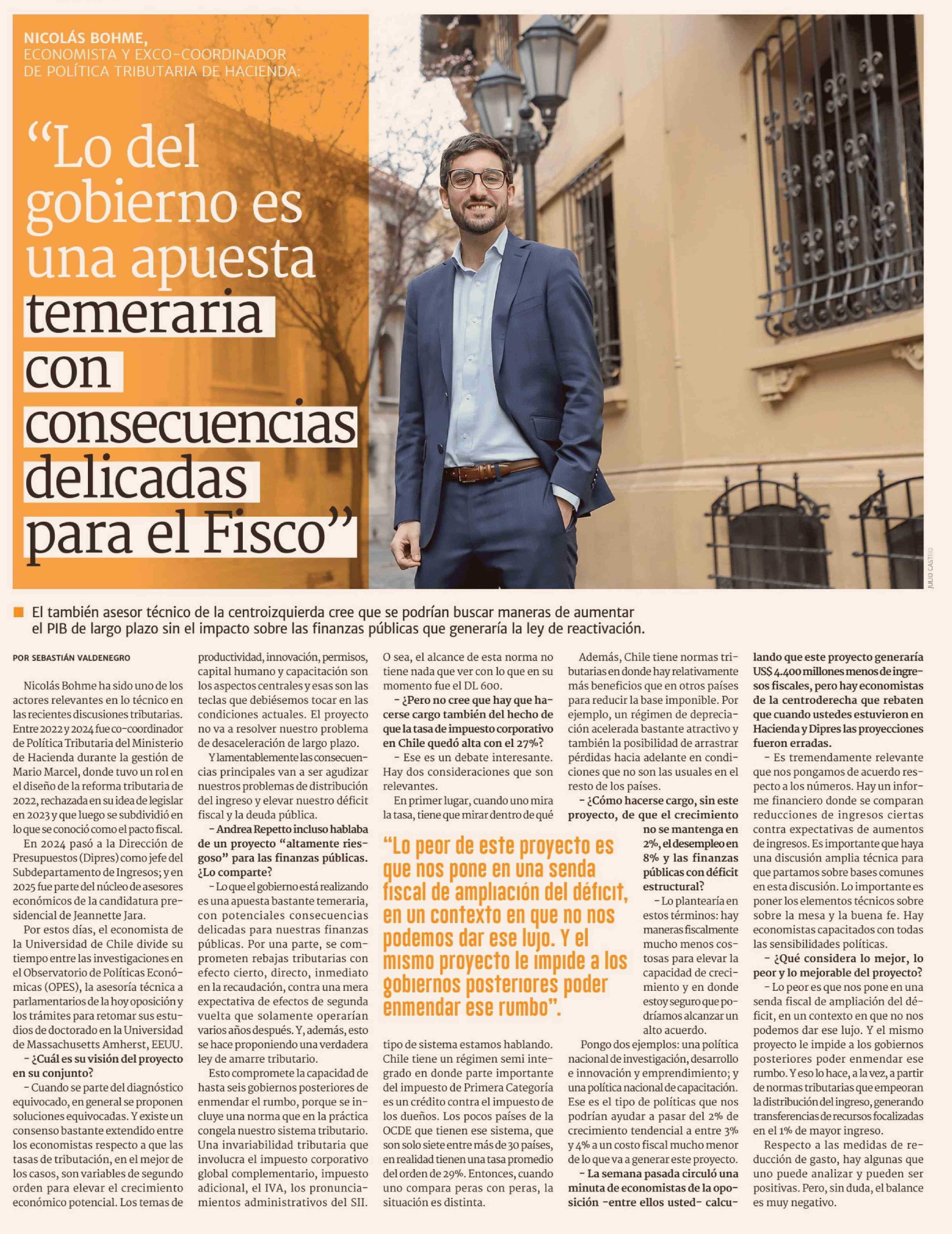 "Lo del gobierno es una apuesta temeraria con consecuencias delicadas para el Fisco" 27-04-2026 Diario Financiero |
