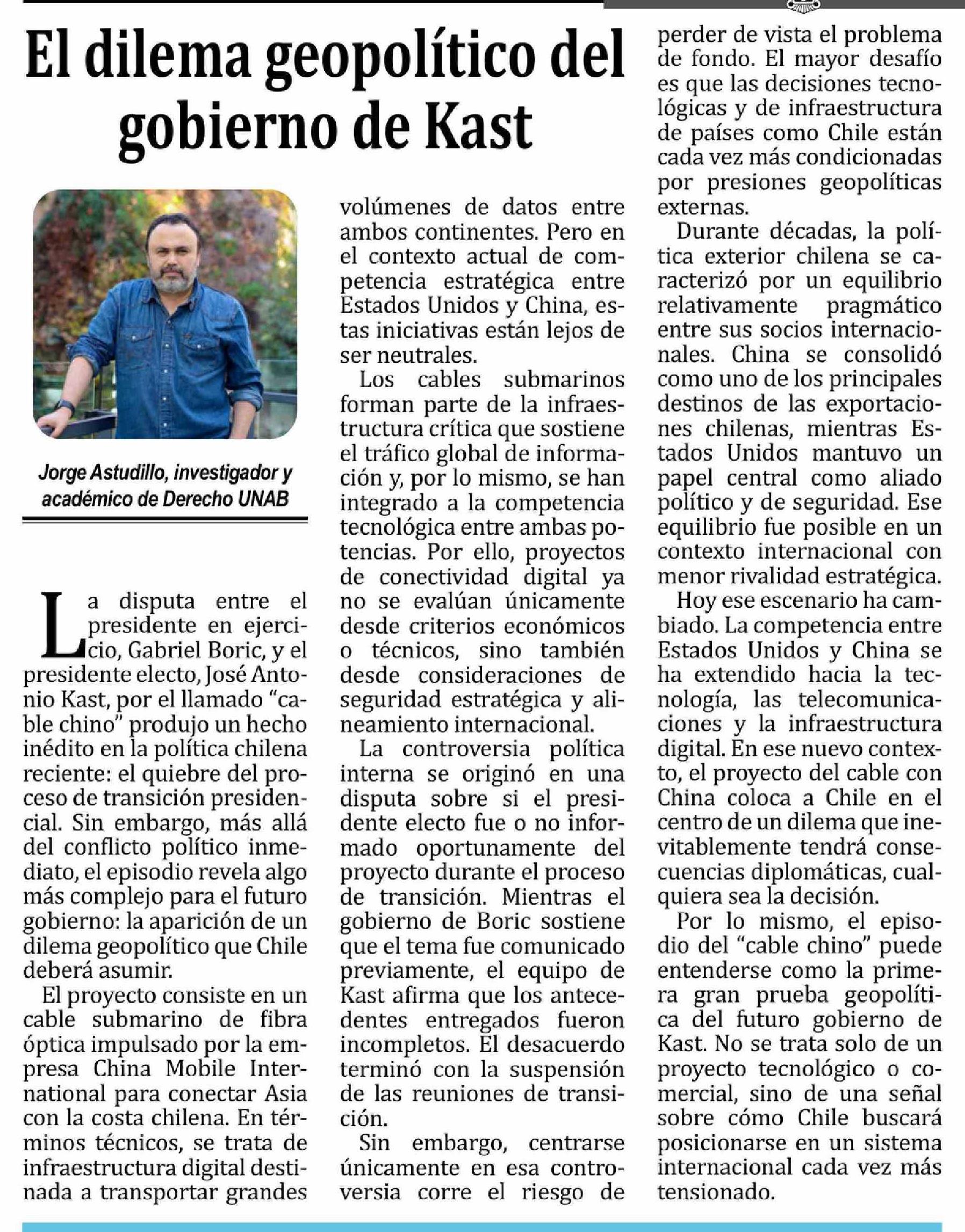 | Título: | El dilema geopolítico del gobierno de Kast |