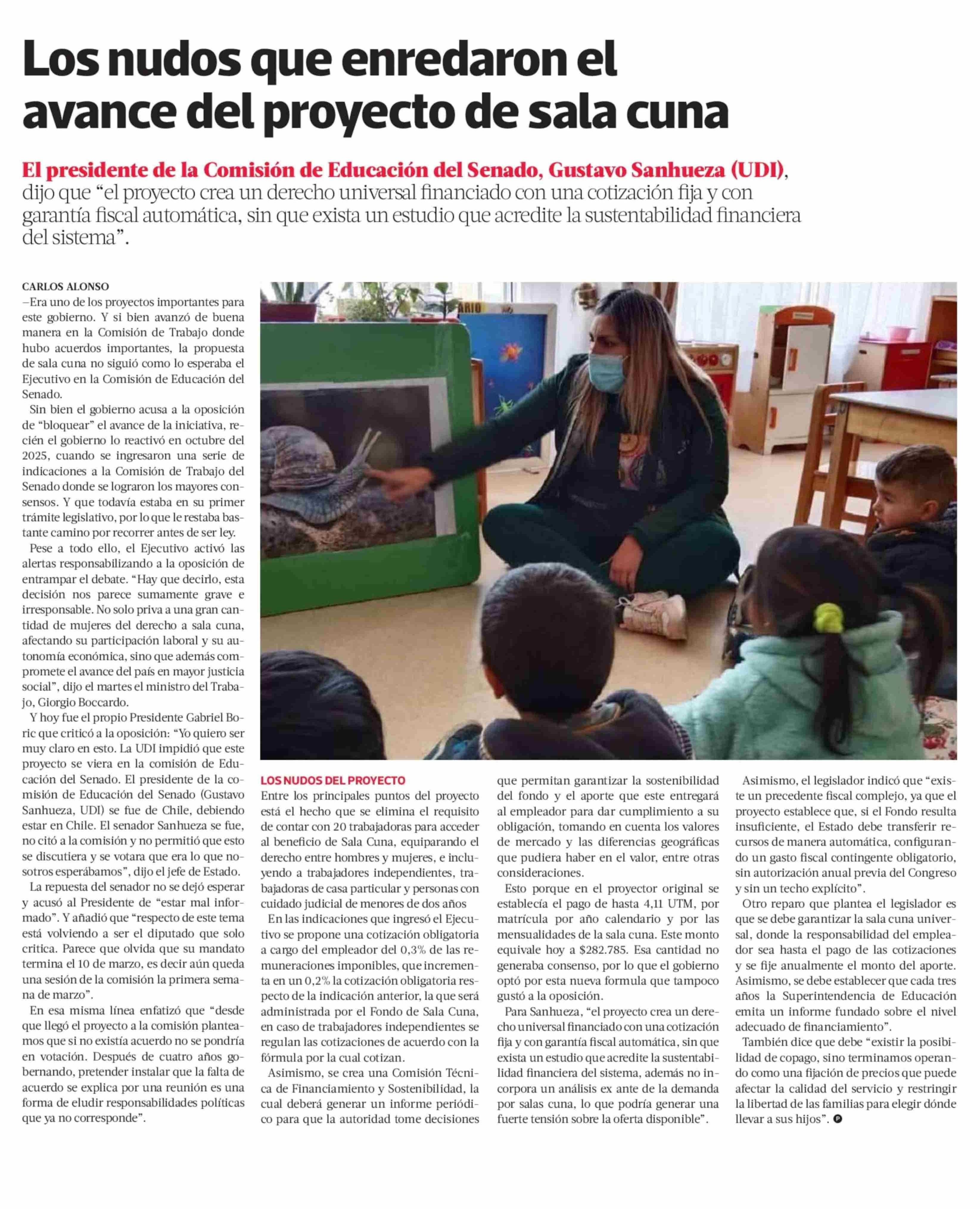 Los nudos que enredaron el avance del proyecto de sala cuna 29-01-2026 La Tercera |