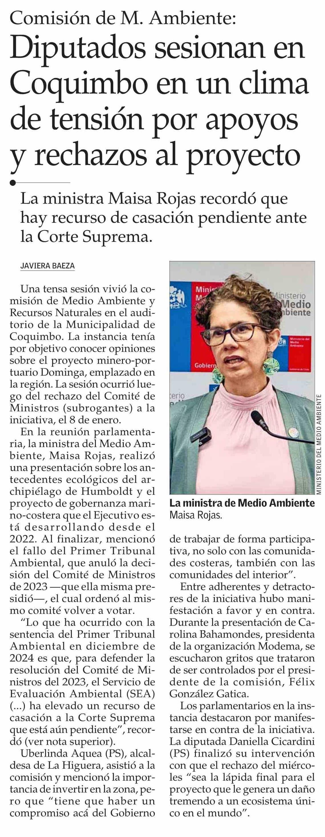 Diputados sesionan en Coquimbo en un clima de tensión por apoyos y rechazos al proyecto 10-01-2025 El Mercurio |