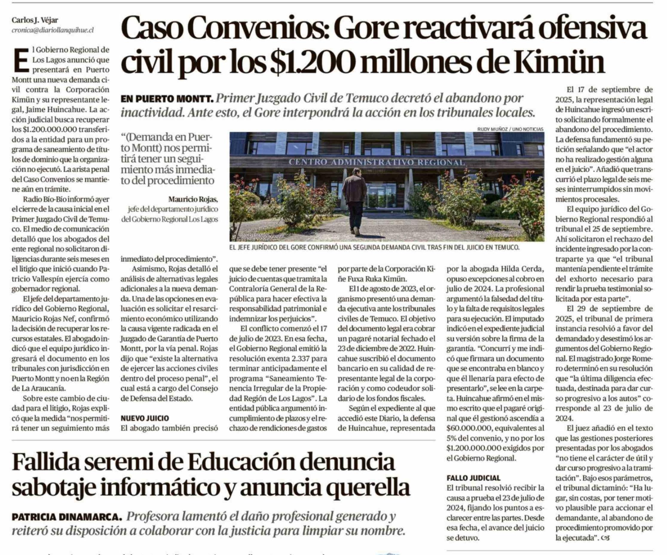 Caso Convenios: Gore reactivará ofensiva civil por los $1.200 millones de Kimün 03-04-2026 El Llanquihue |