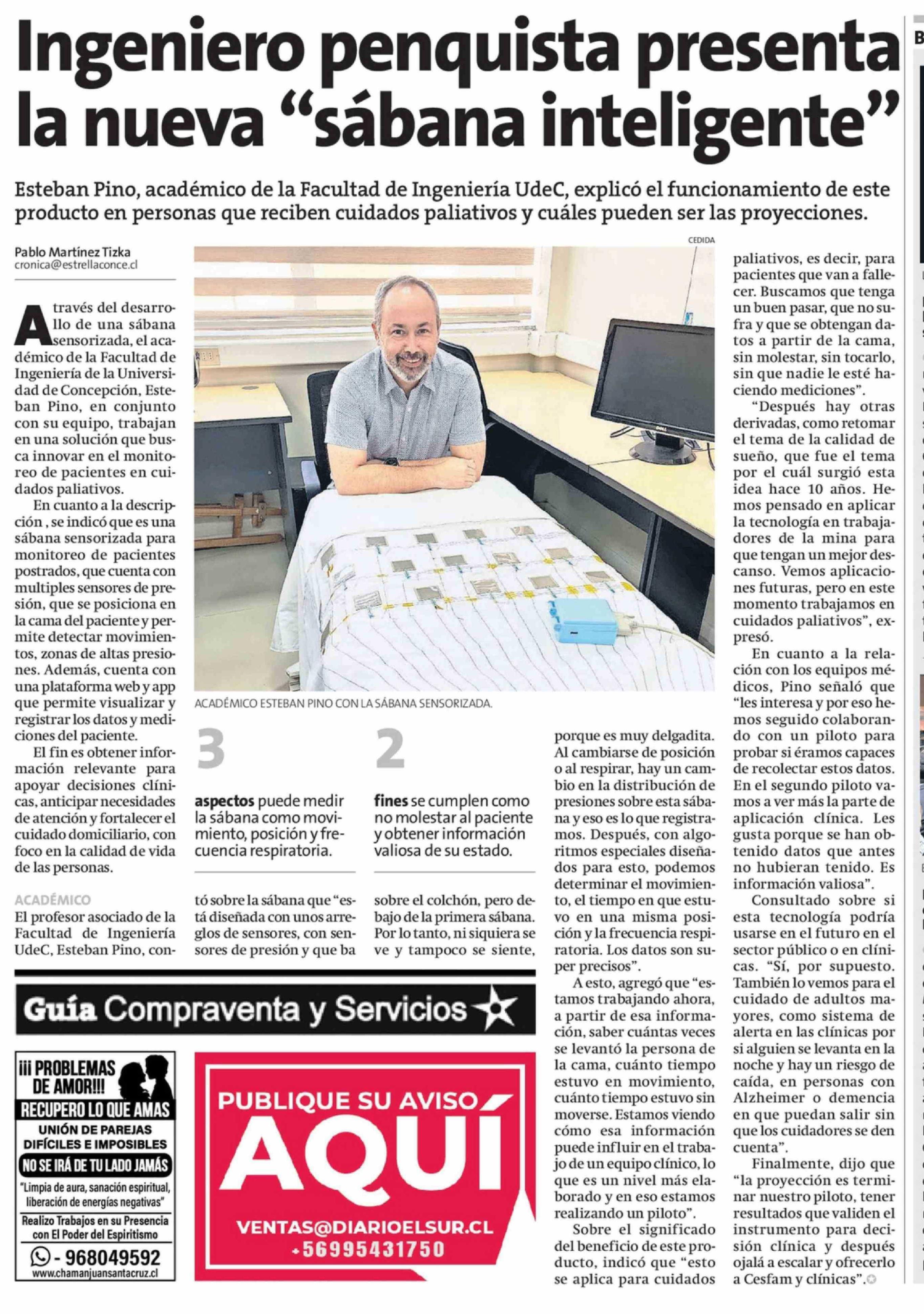 Título: Ingeniero penquista presenta la nueva "sábana inteligente"