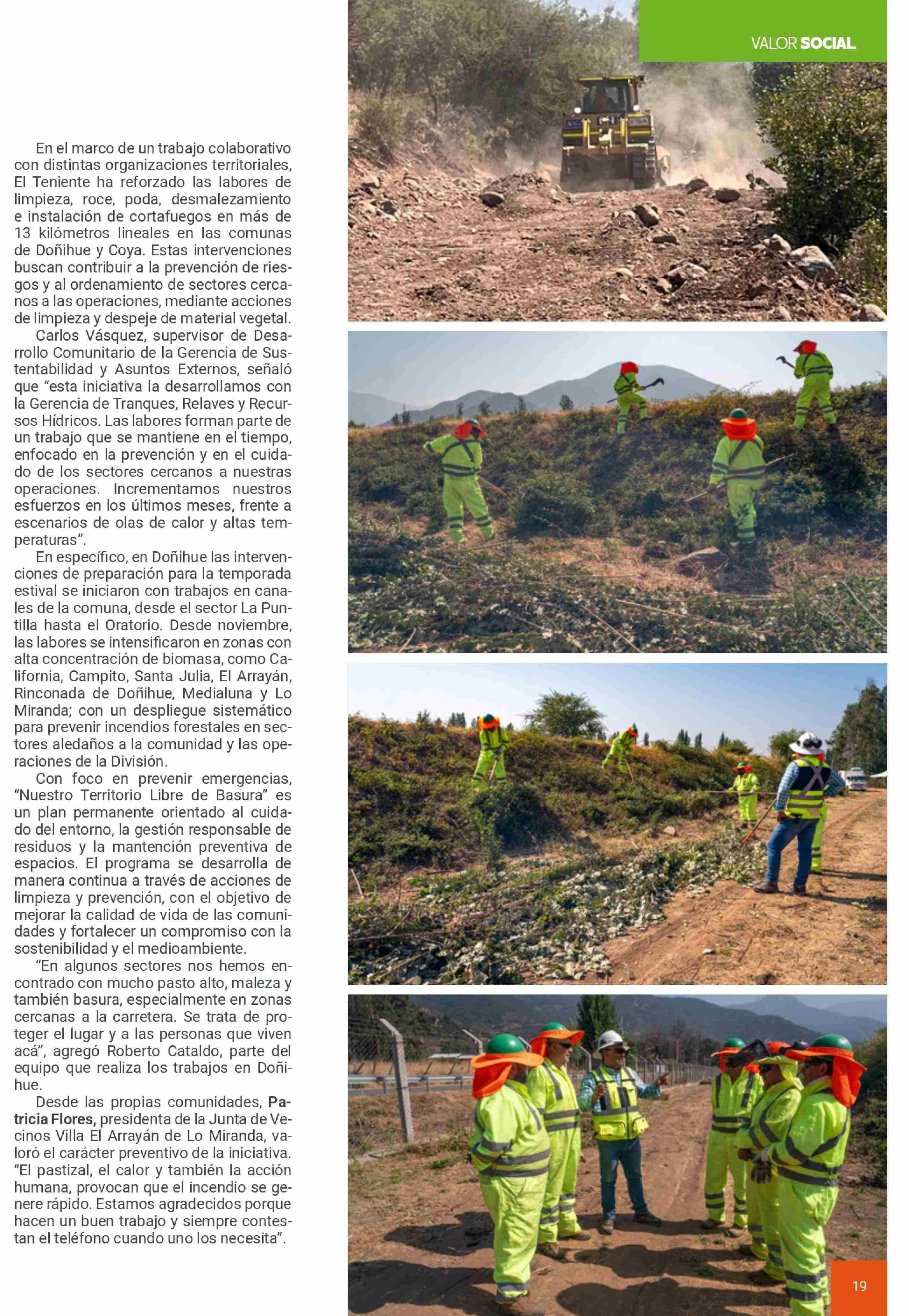 | Título: | El Teniente realizó limpieza preventiva para reducir riesgo de incendios forestales |