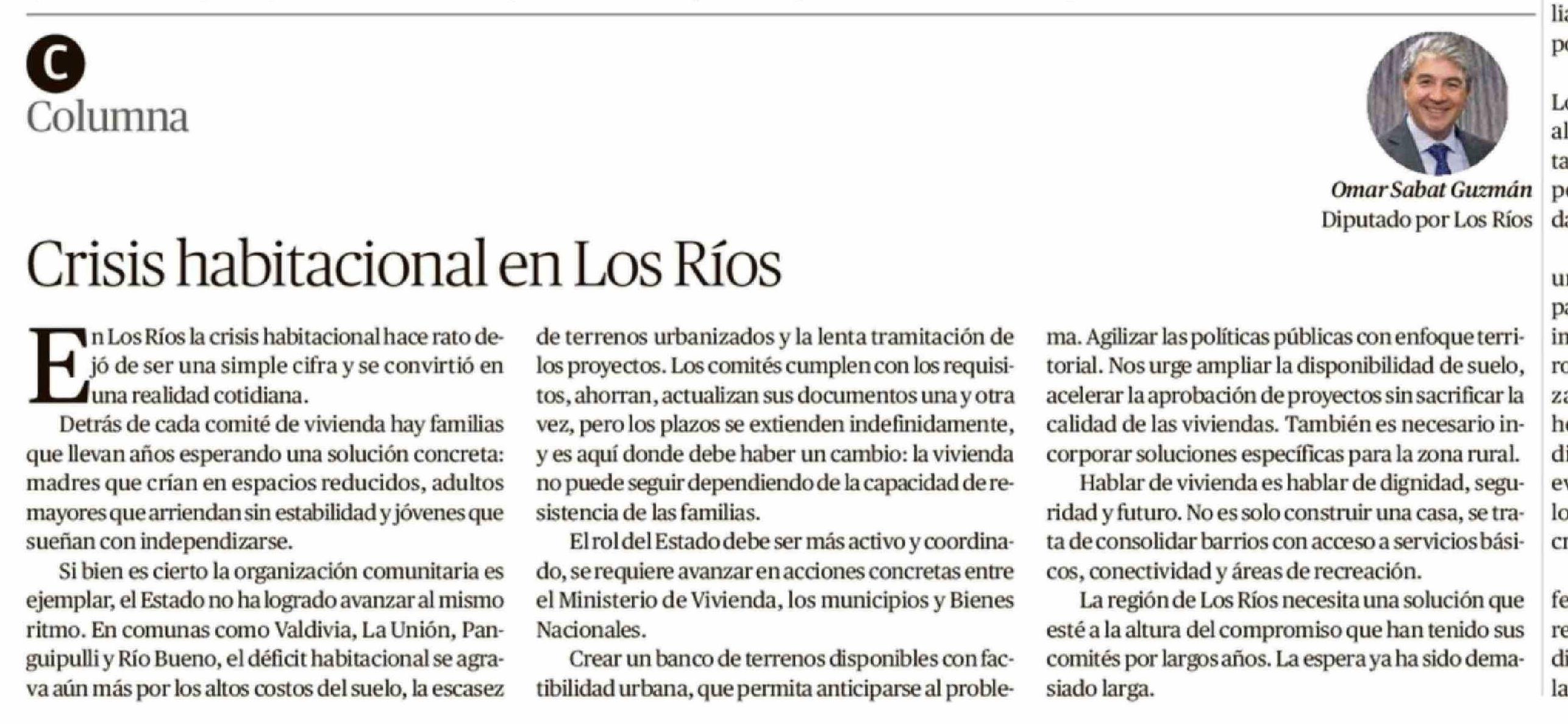 Título: Columnas de Opinión: Crisis habitacional en Los Ríos