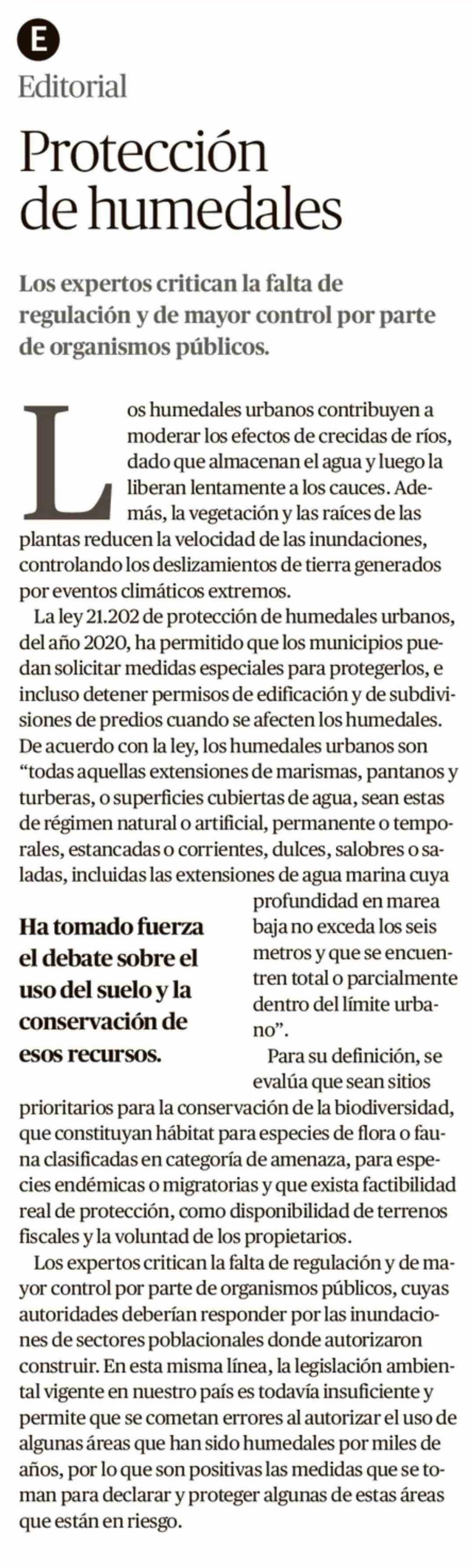 Editorial: Protección de humedales