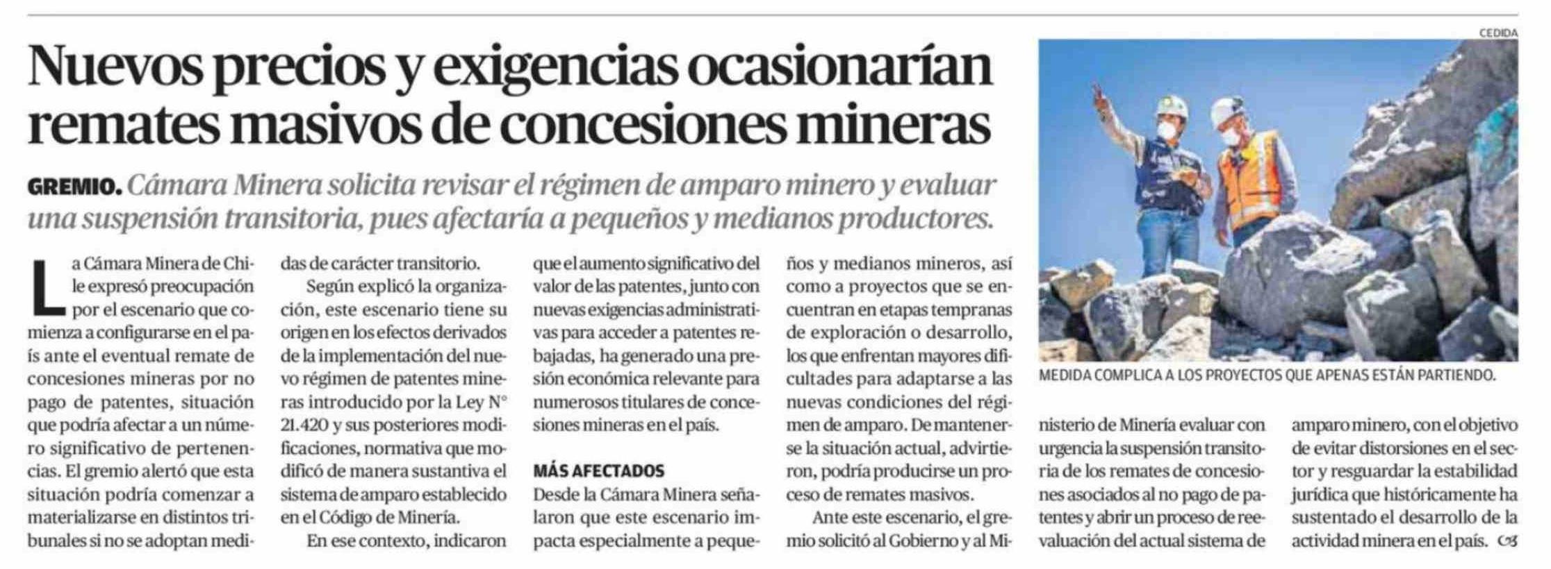 Título: Nuevos precios y exigencias ocasionarían remates masivos de concesiones mineras