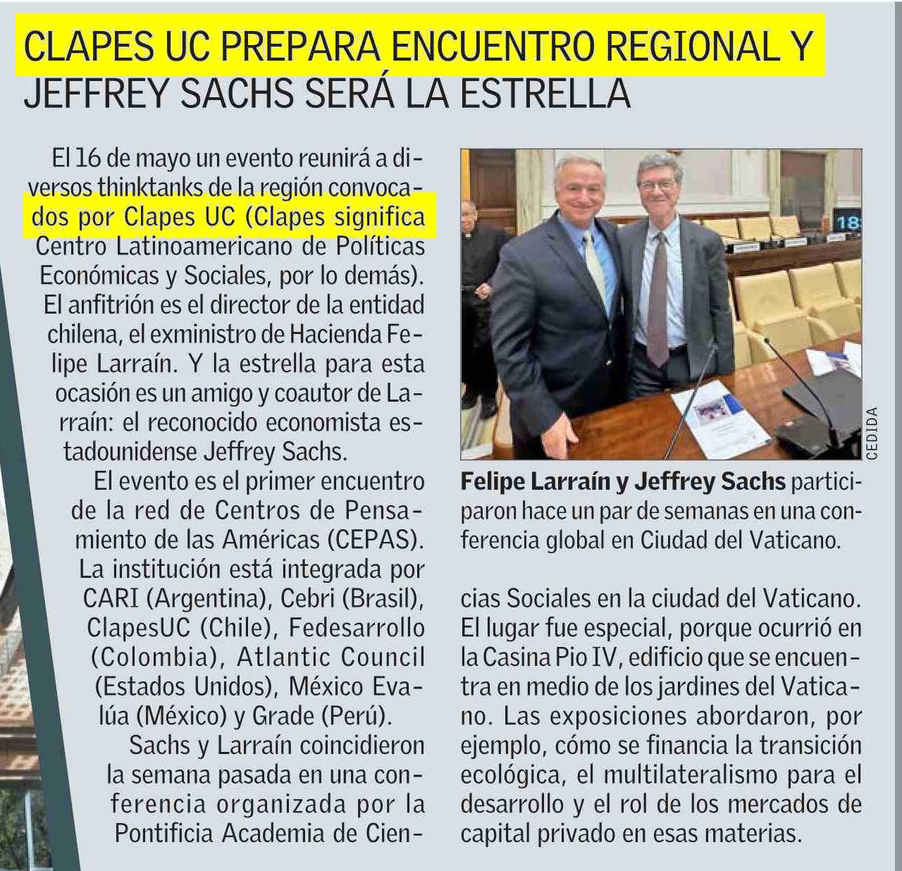 CLAPES UC PREPARA ENCUENTRO REGIONAL Y JEFFREY SACHS SERÁ LA ESTRELLA 14-04-2025 El Mercurio |
