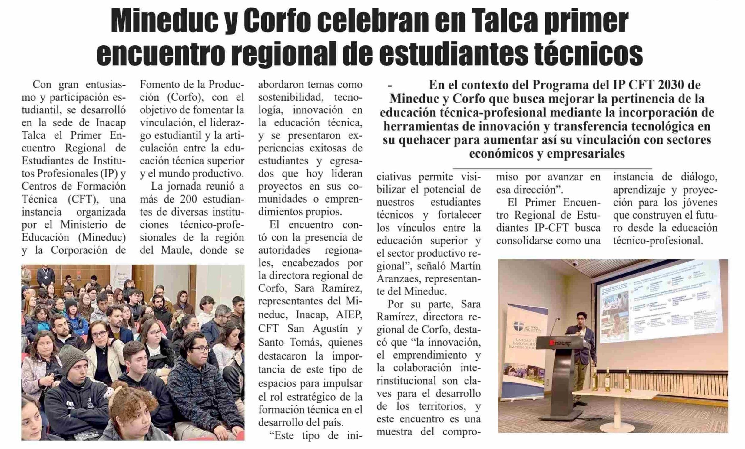 Título: Mineduc y Corfo celebran en Talca primer encuentro regional de estudiantes técnicos