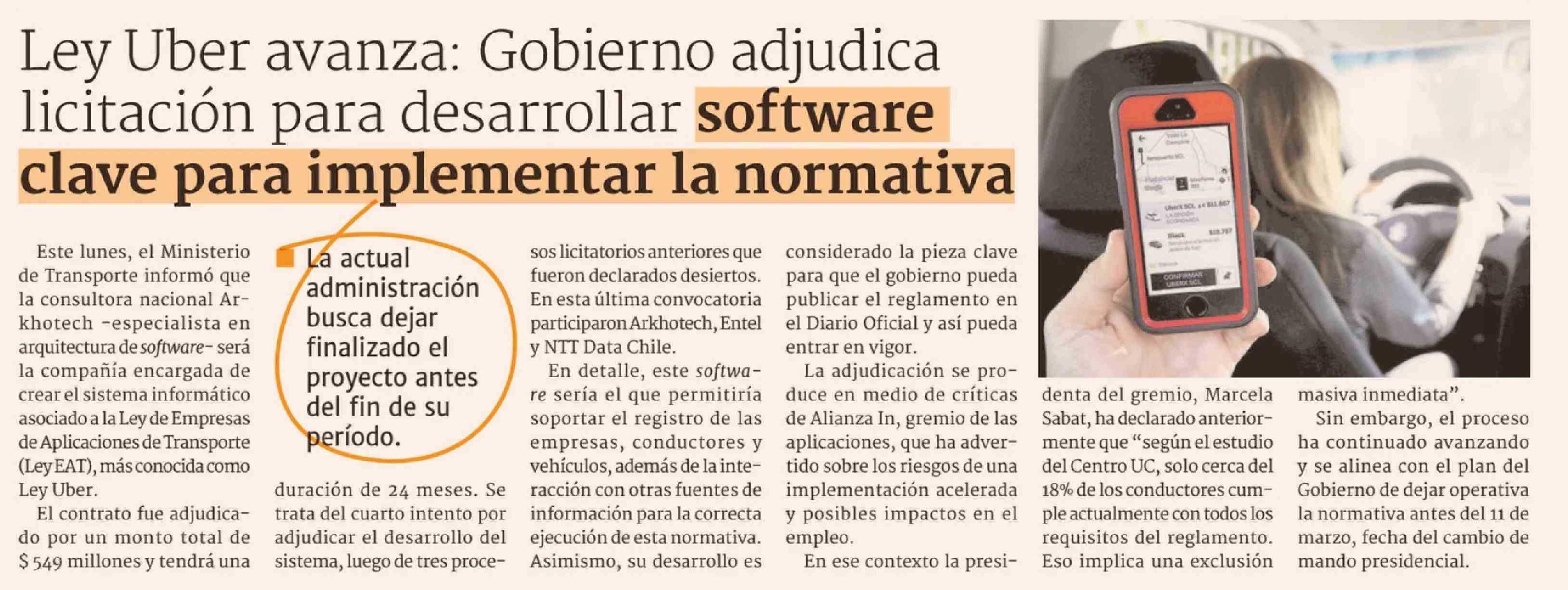 Título: Ley Uber avanza: Gobierno adjudica licitación para desarrollar software clave para implementar la normativa