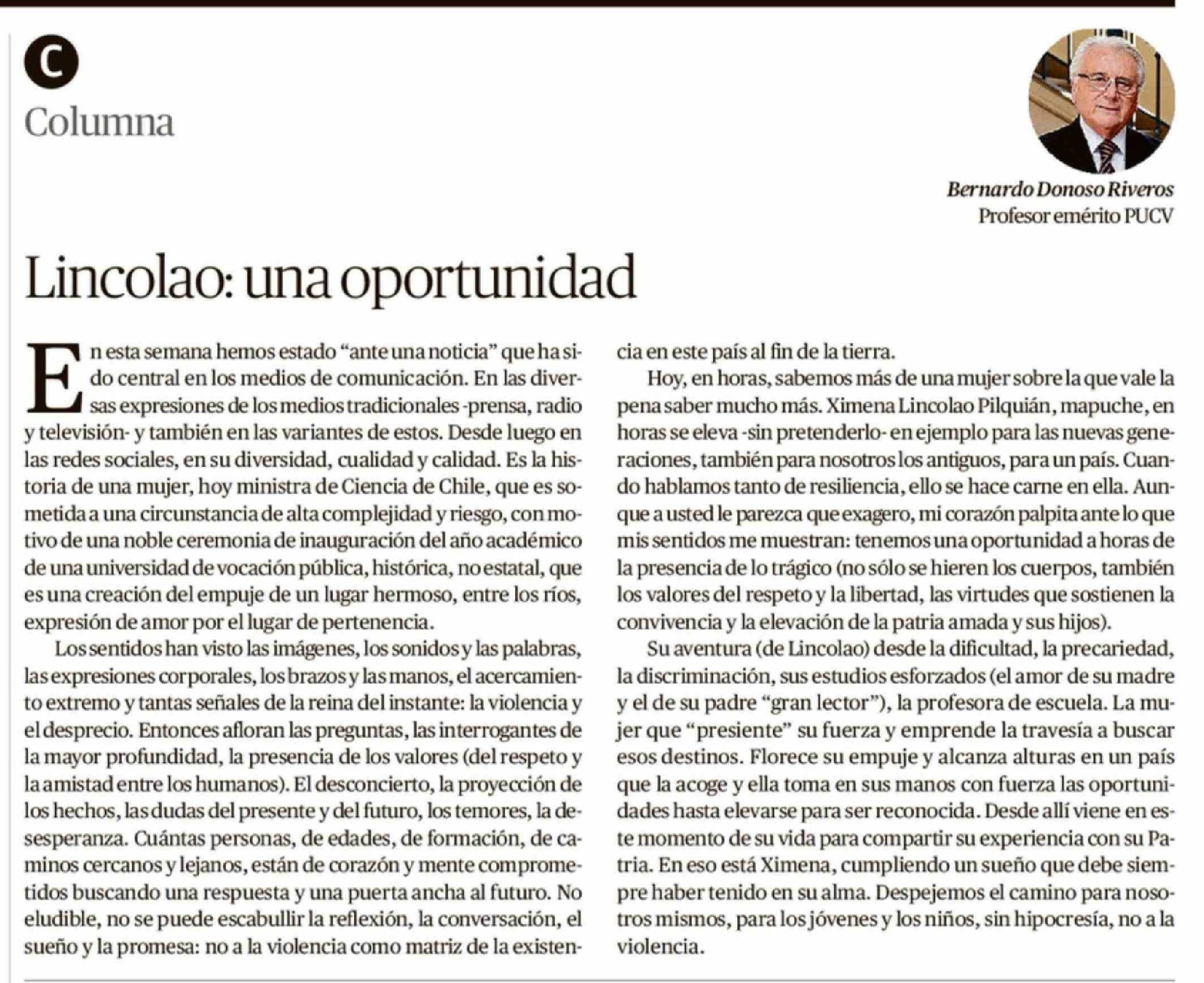 Título: Columnas de Opinión: Lincolao: una oportunidad