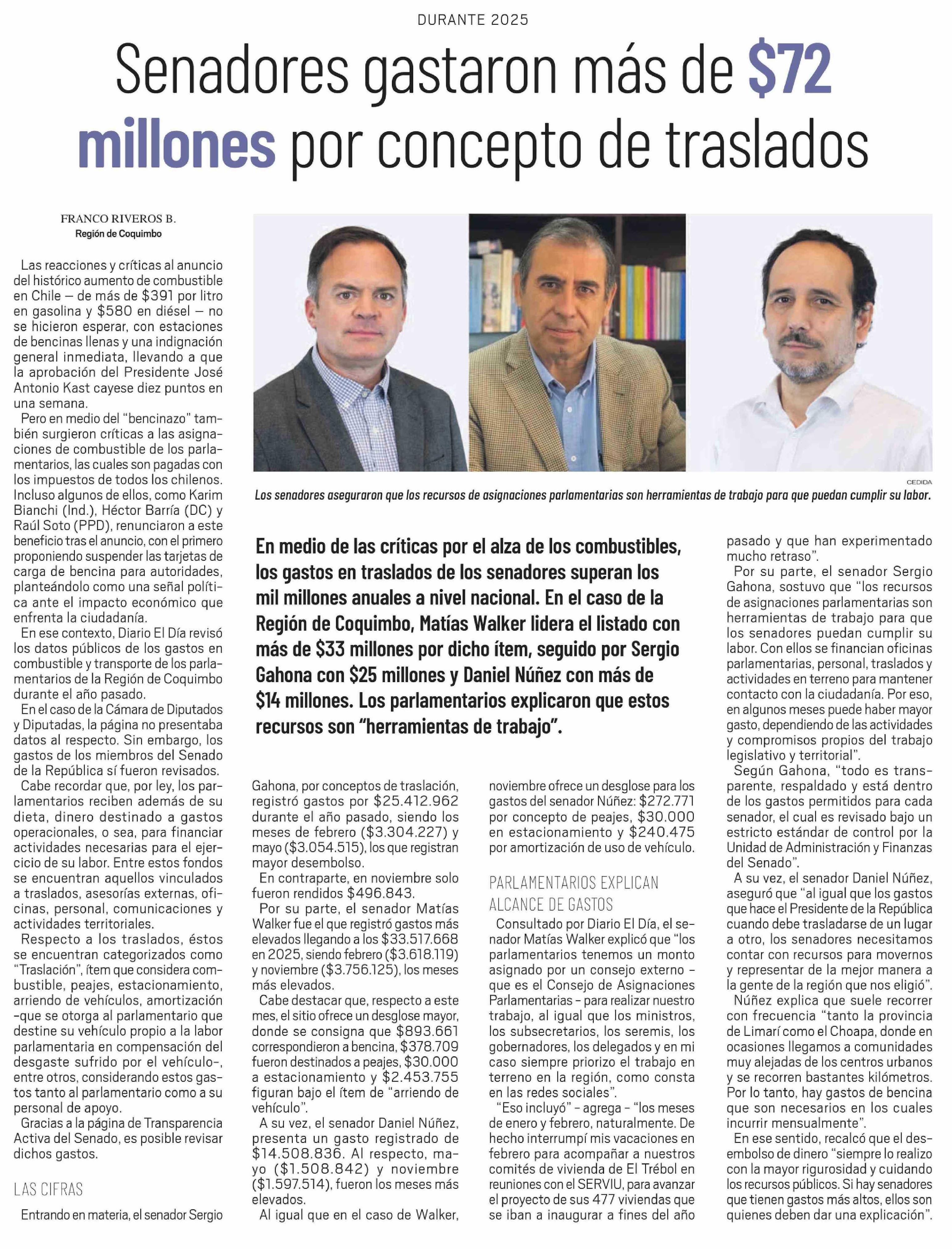 Título: Senadores gastaron más de $72 millones por concepto de traslados