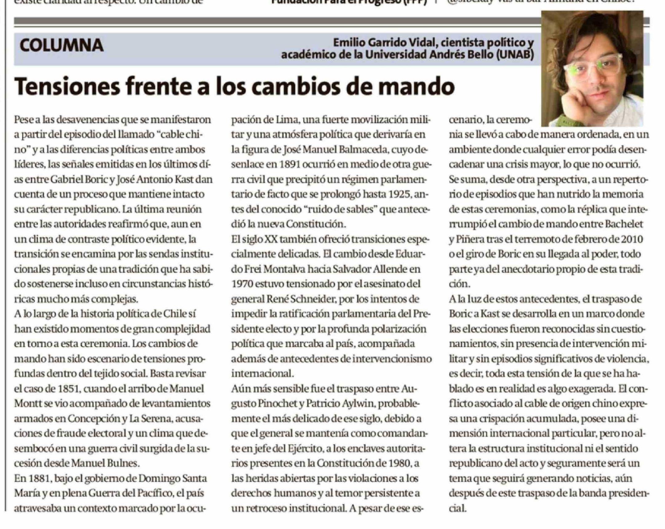 | Título: | Columnas de Opinión: Tensiones frente a los cambios de mando |