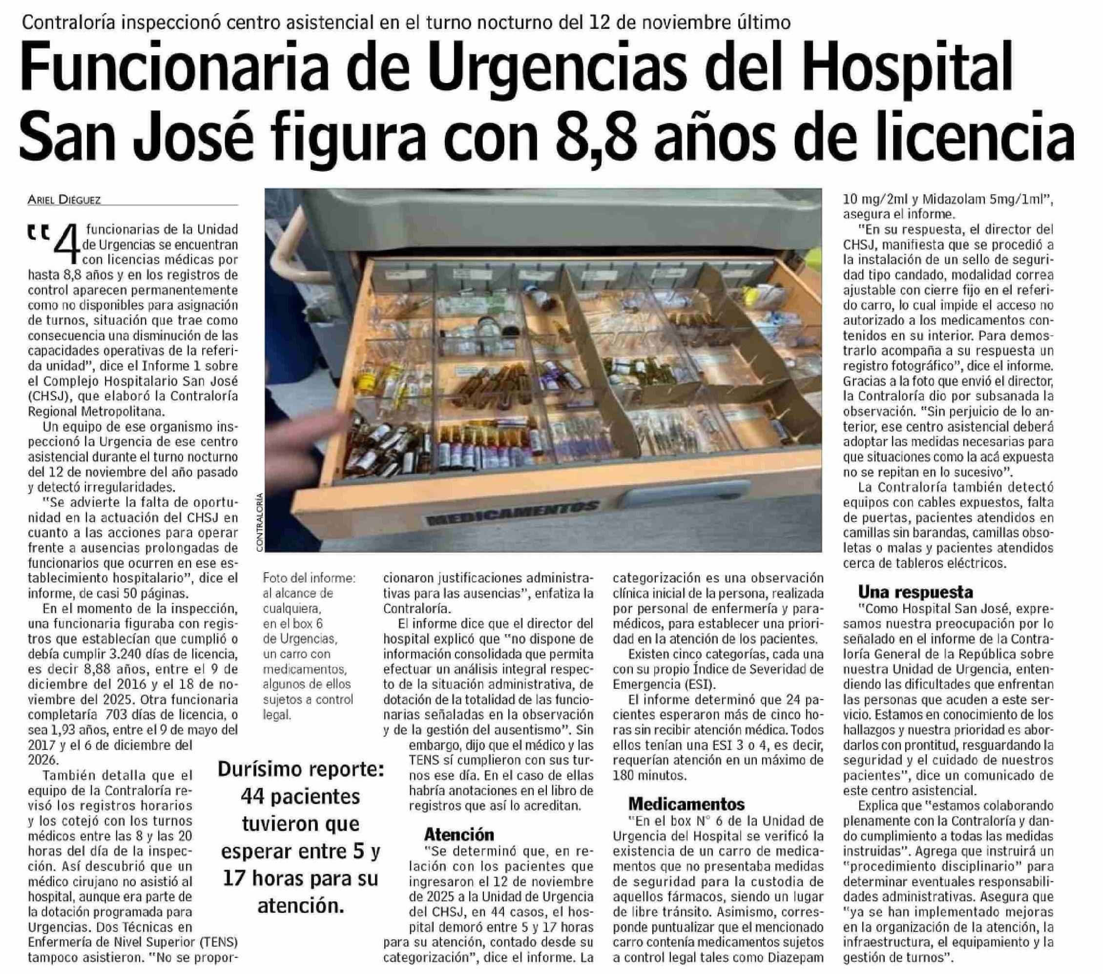 Título: Funcionaria de Urgencias del Hospital San José figura con 8,8 años de licencia
