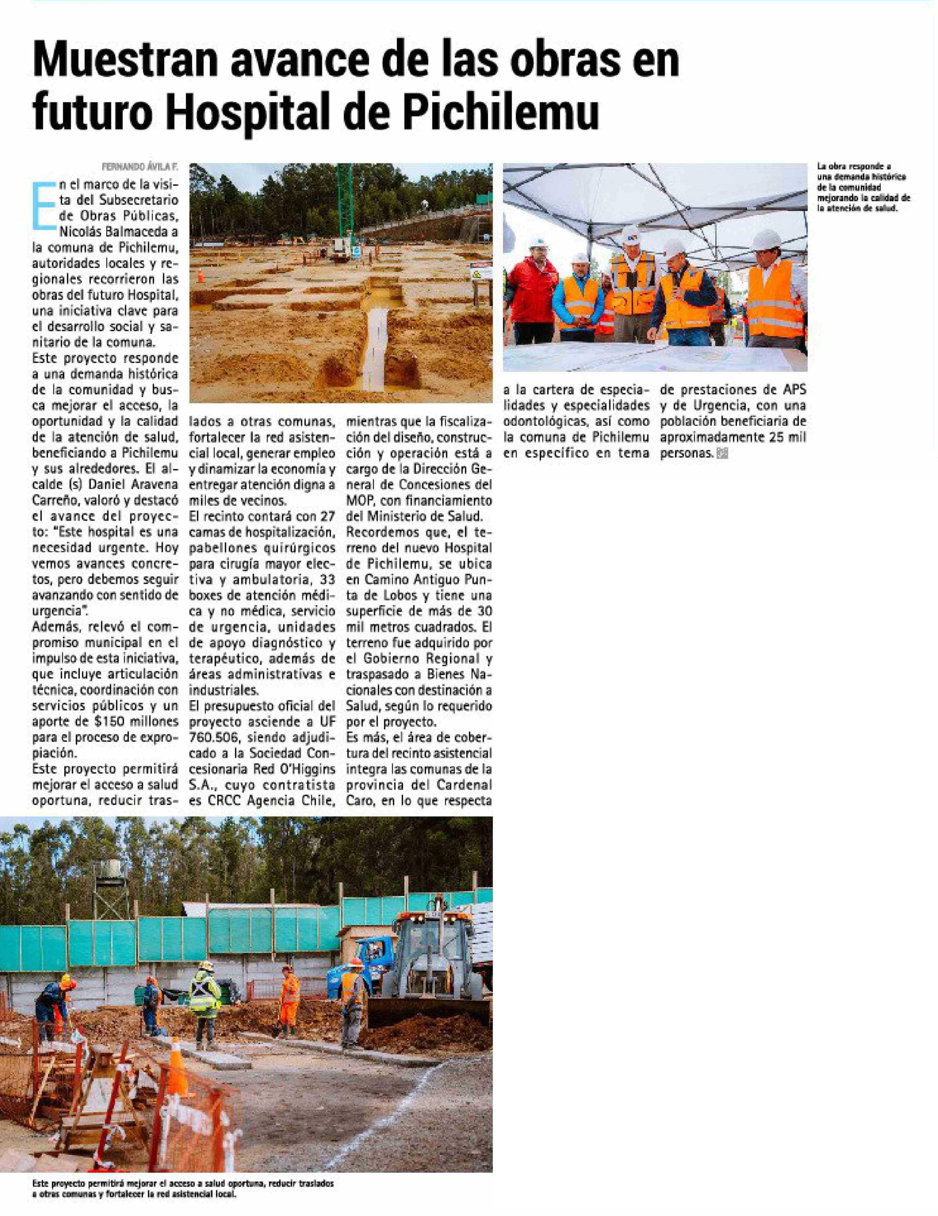 Muestran avance de las obras en futuro Hospital de Pichilemu 24-03-2026 El Rancagüino |